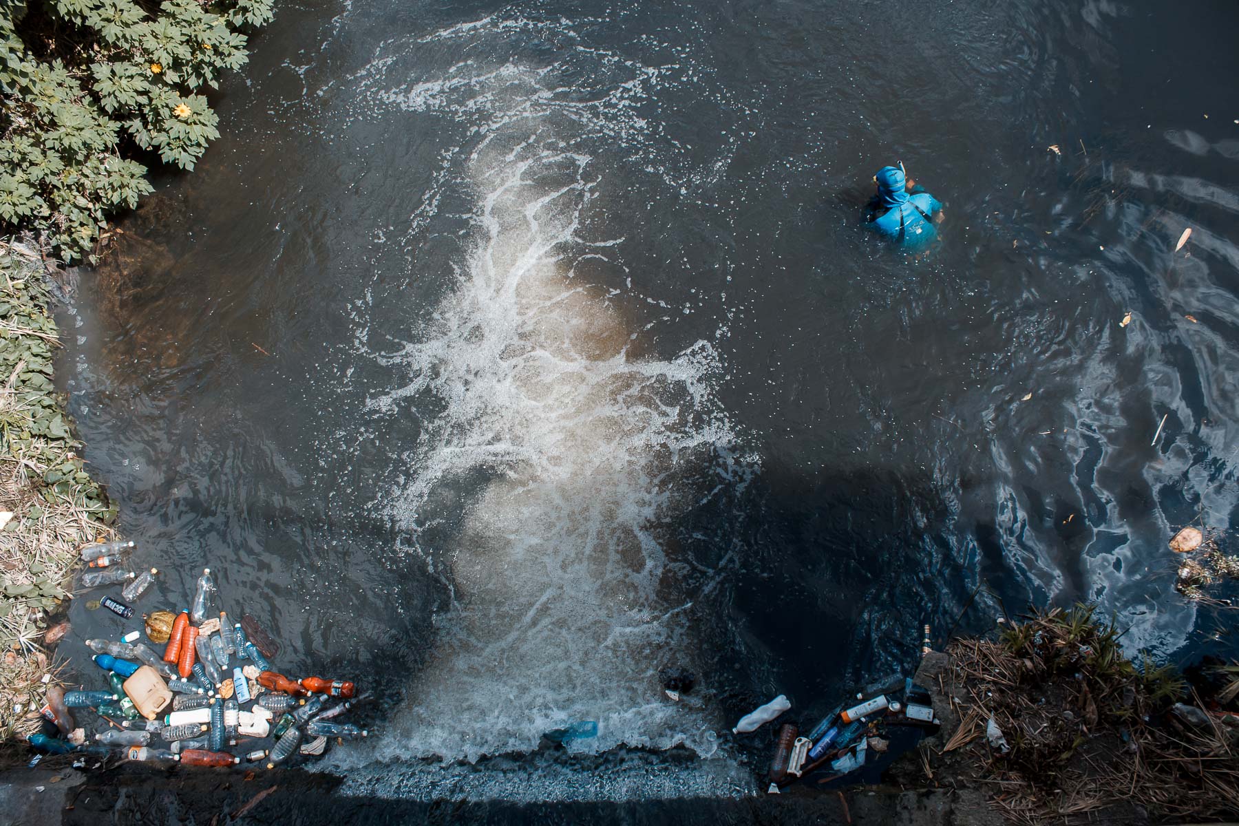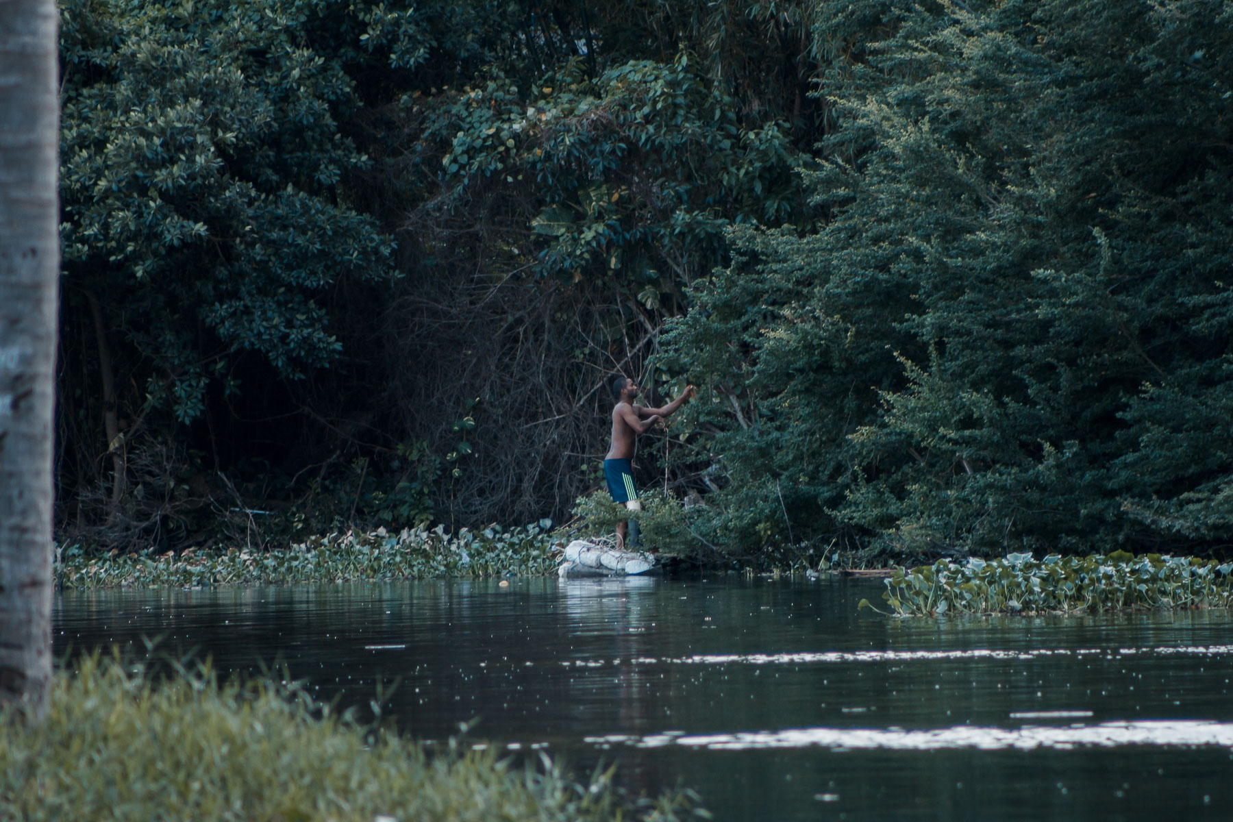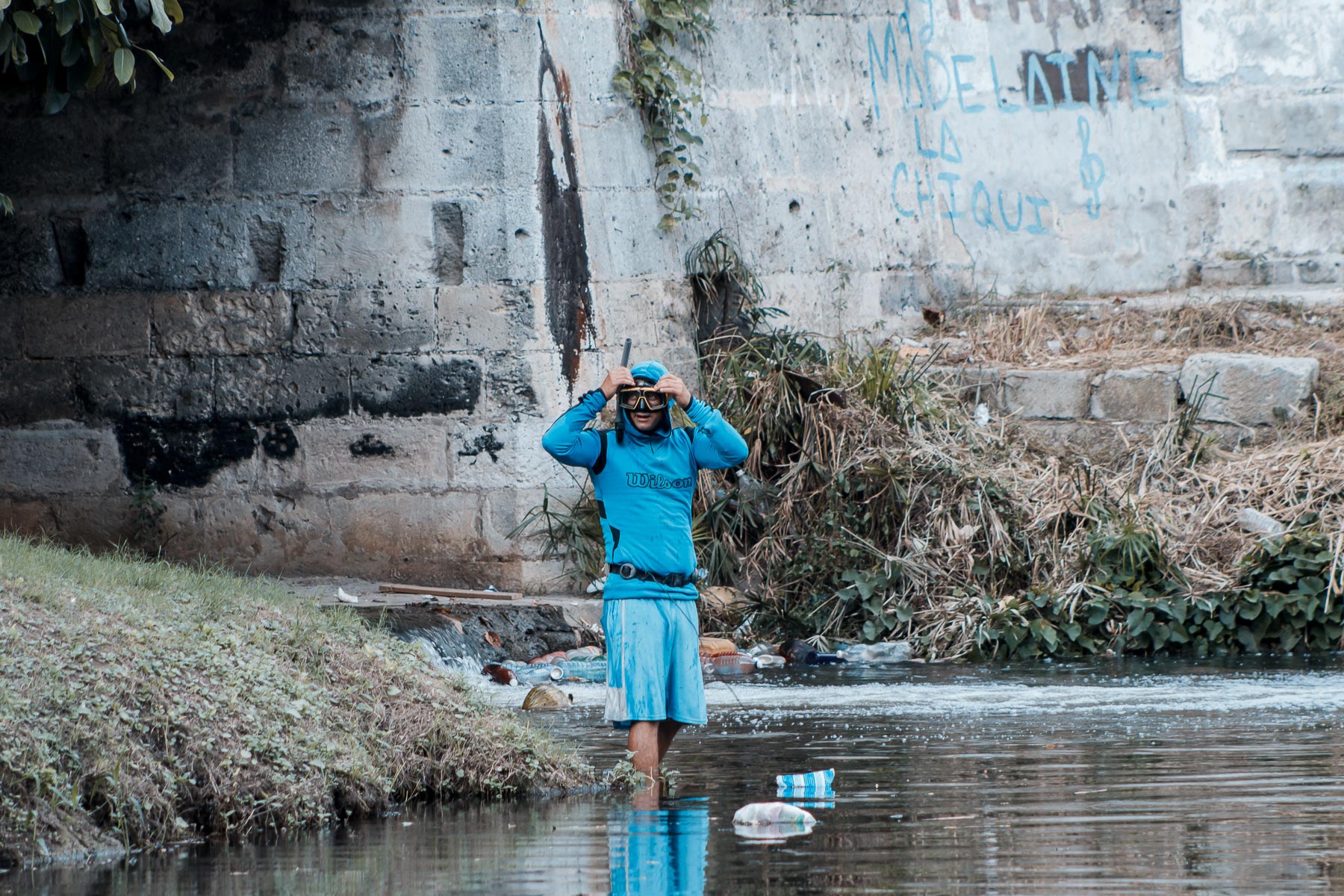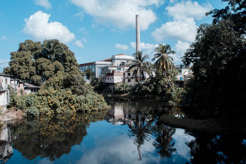 El Almendares, ícono de la ciudad, ha sido afectado considerablemente por los desechos de las industrias que se desarrollaron en sus orillas, los cuales, sumados a los de las comunidades aledañas, han hecho del río uno de los más contaminados de la ciudad. Comunidades como la de Puentes Grandes o El Fanguito habitan en sus márgenes y son afectadas por esa contaminación a la que también contribuyen. Más que documentar la vida del río, estas fotografías dan fe de su tránsito hacia la muerte, aunque según los pescadores –la comunidad que más ha promovido la limpieza y el cuidado del Almendares– su condición ha mejorado en los últimos cinco años.