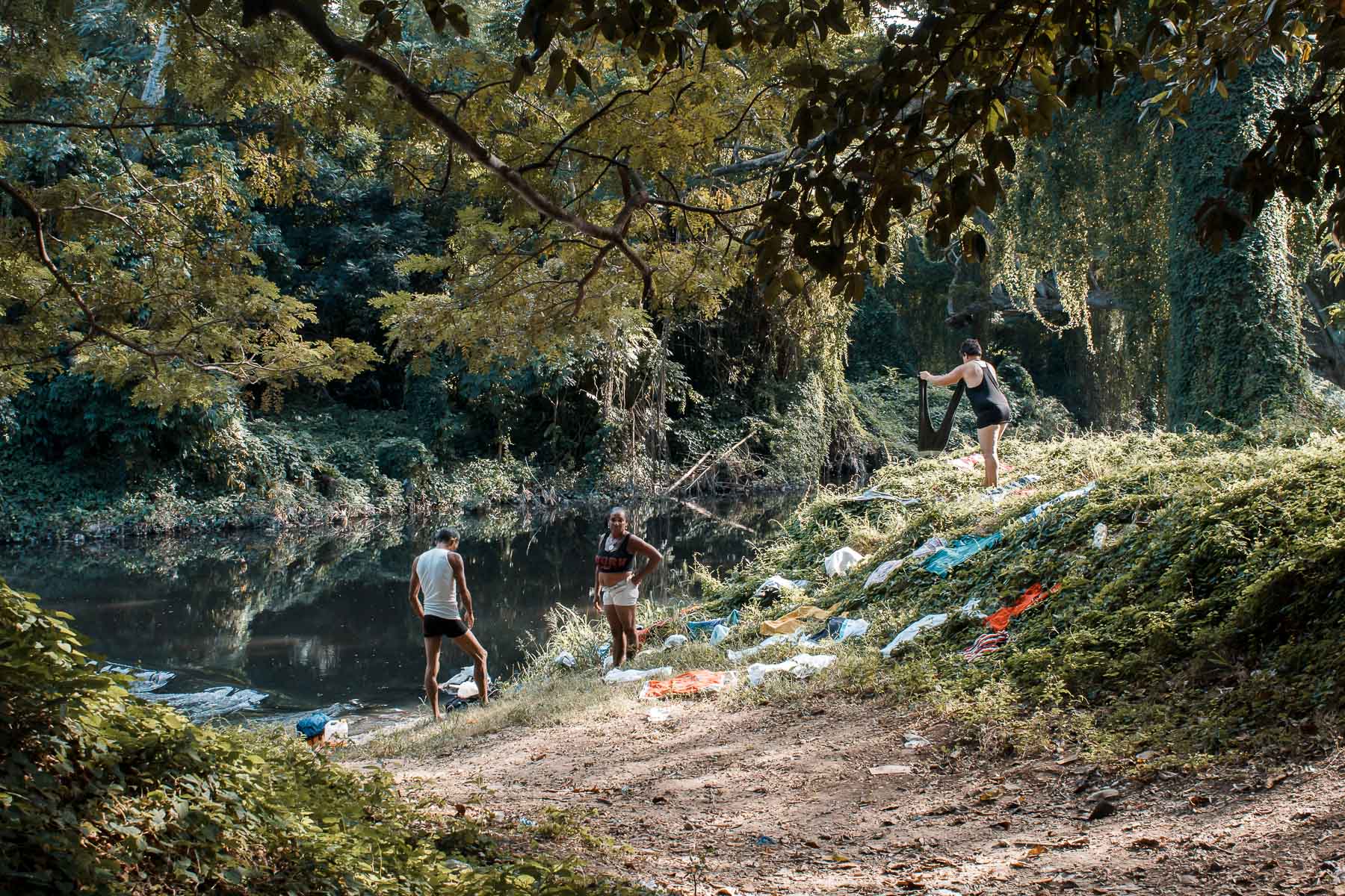 Las personas también lavan la ropa en sus orillas.