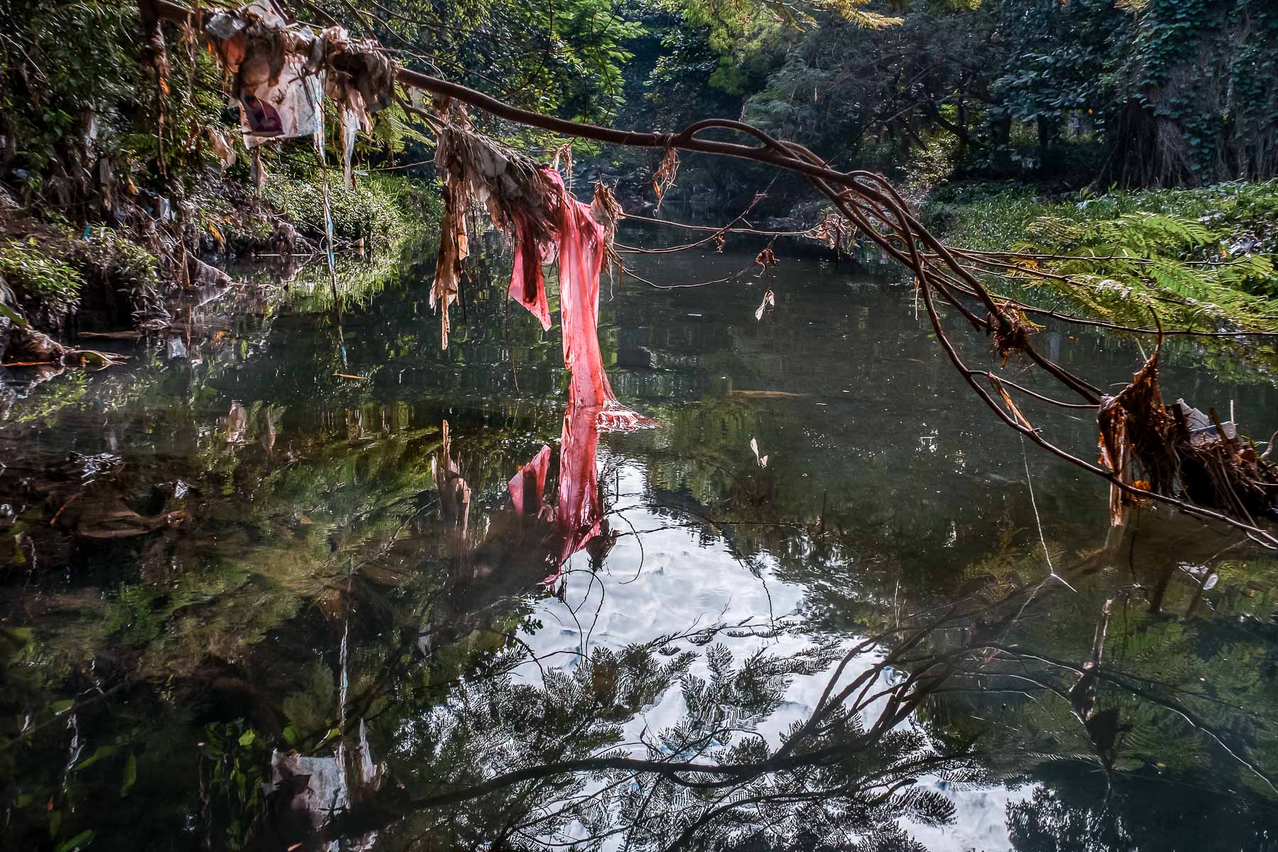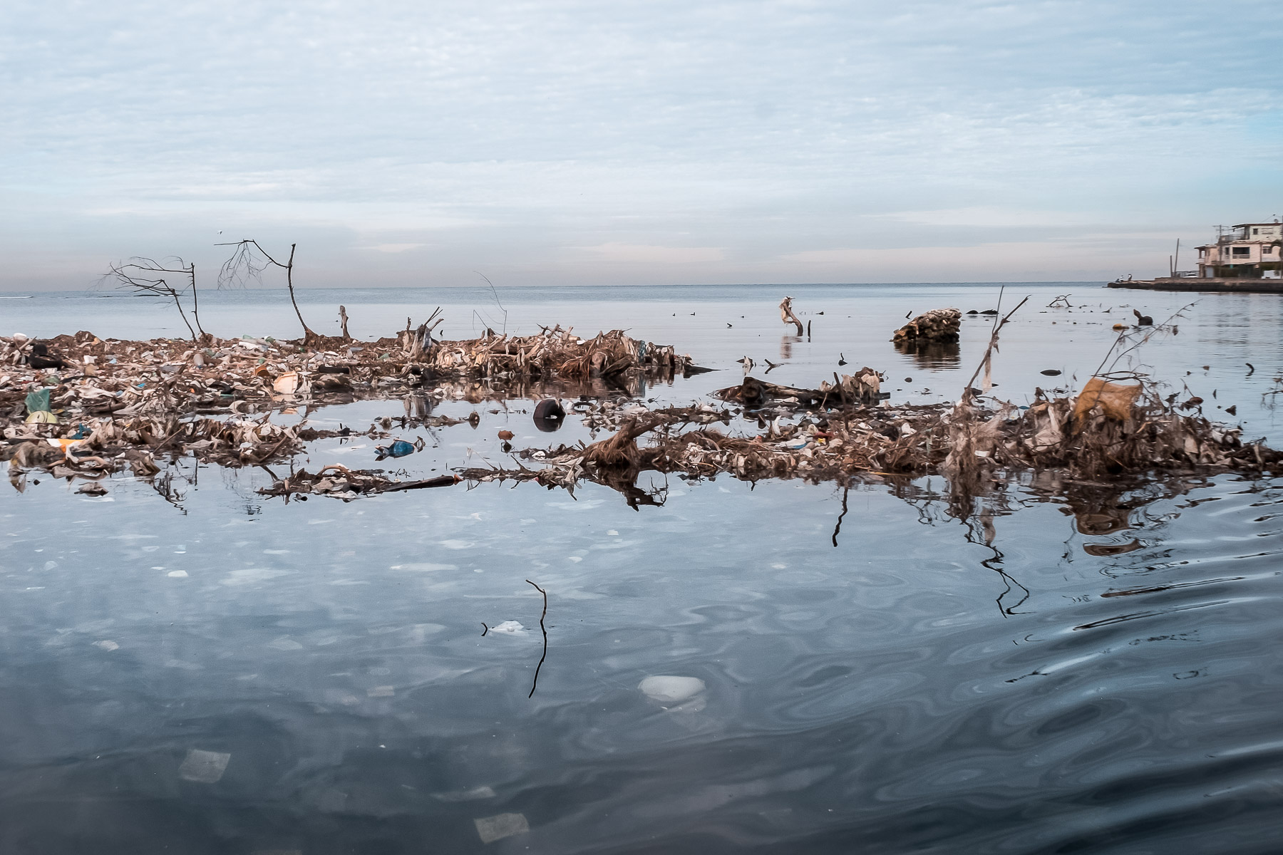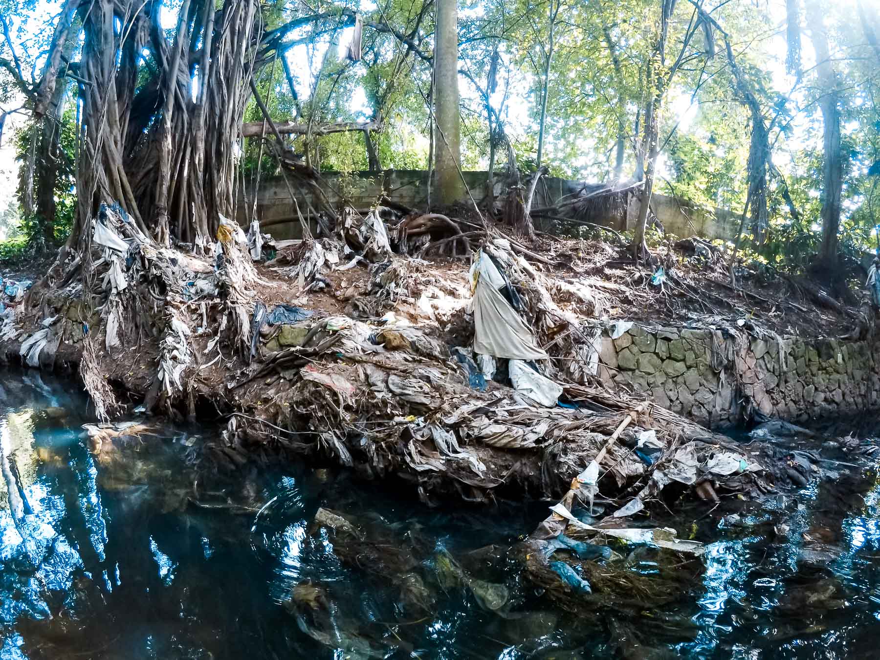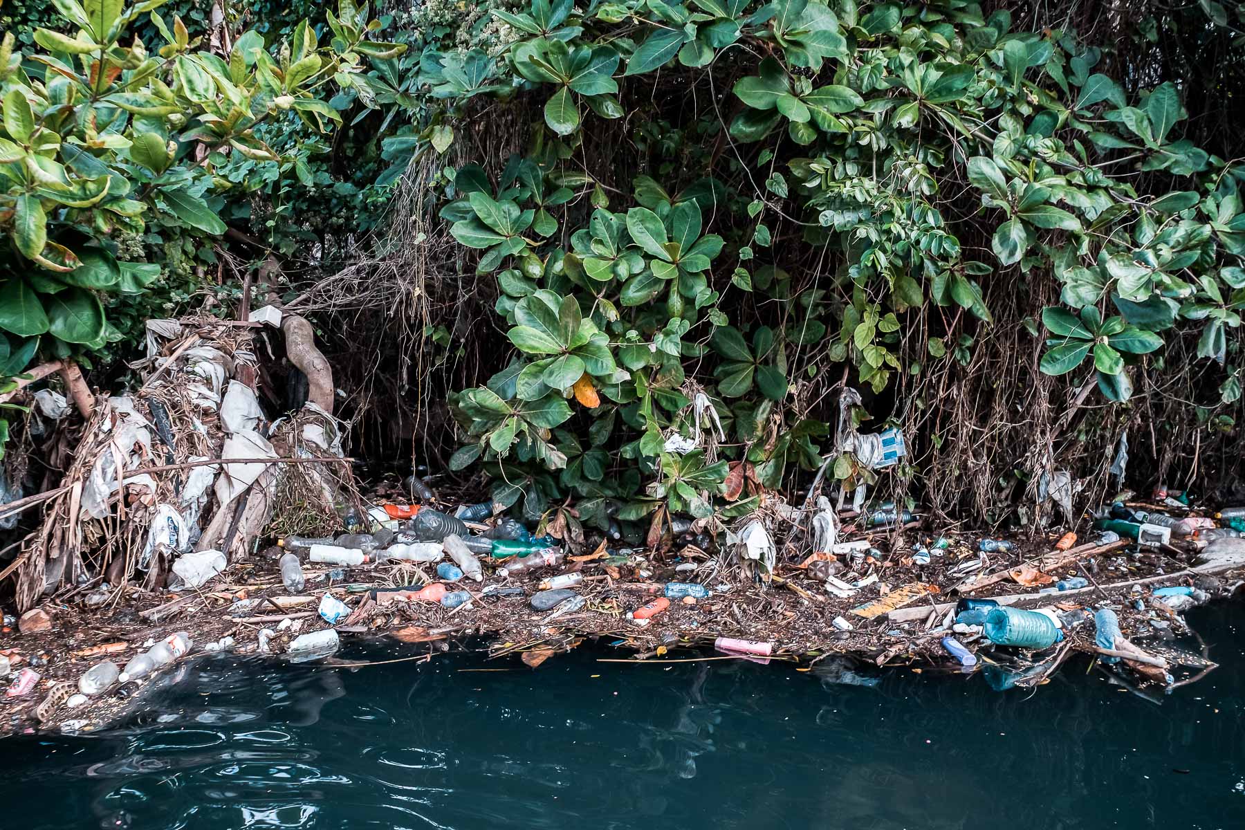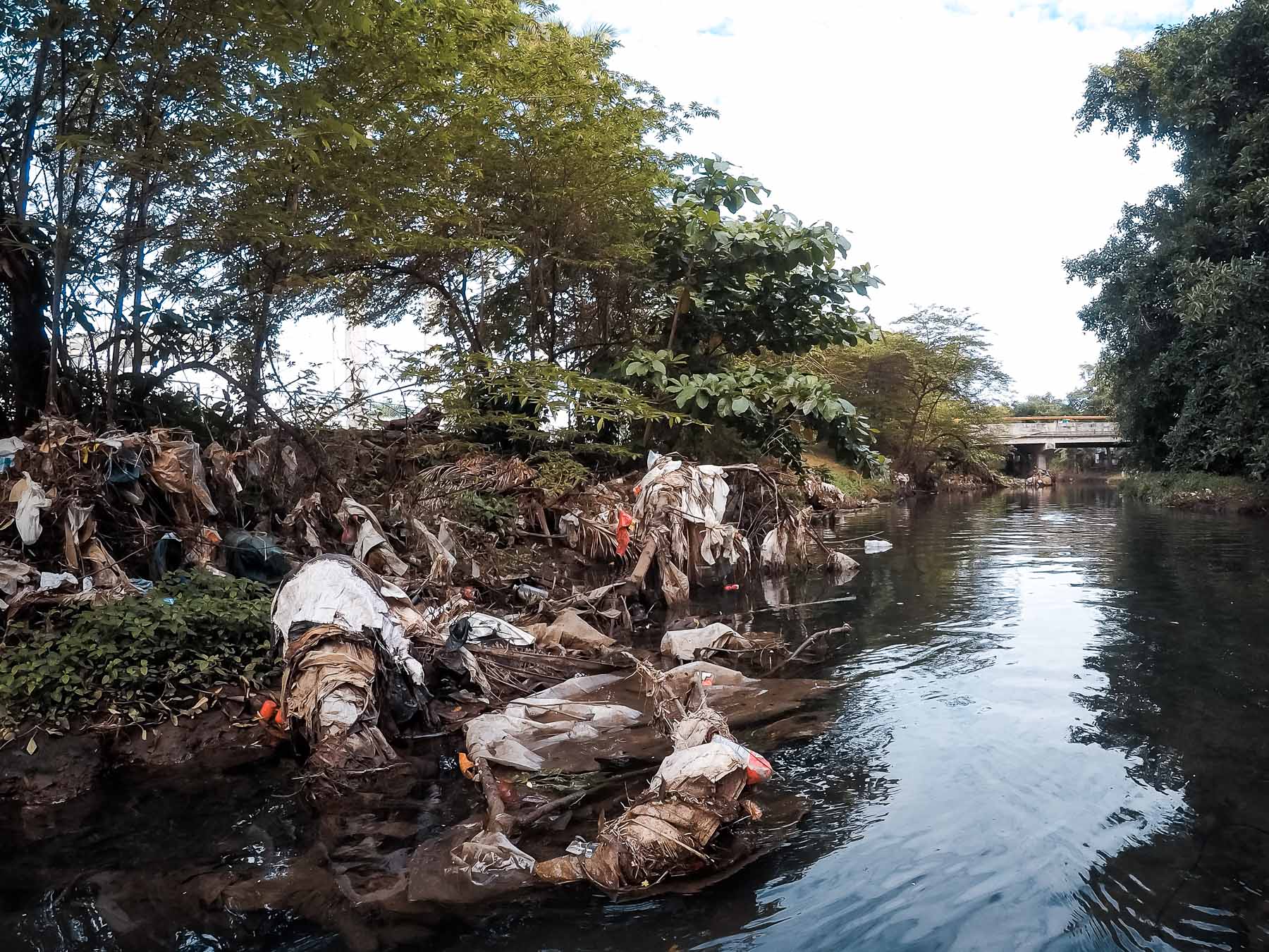 En su desembocadura, que divide Flores del reparto Náutico, el fondo es sintético. Kilogramos de basura cubren su lecho y sus orillas. Este litoral olvidado está a escasos metros de comunidades bastante habitadas. Un poco más adentro se empiezan a ver señales de vida, nenúfares y densa vegetación que se resisten a la basura, en esa batalla constante en que la naturaleza no se da por vencida y renueva, por tanto, la esperanza de que aún se puede salvar el río.