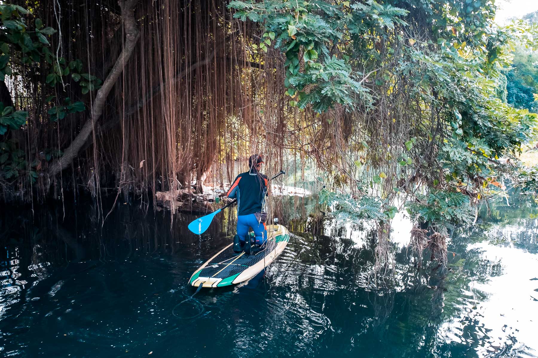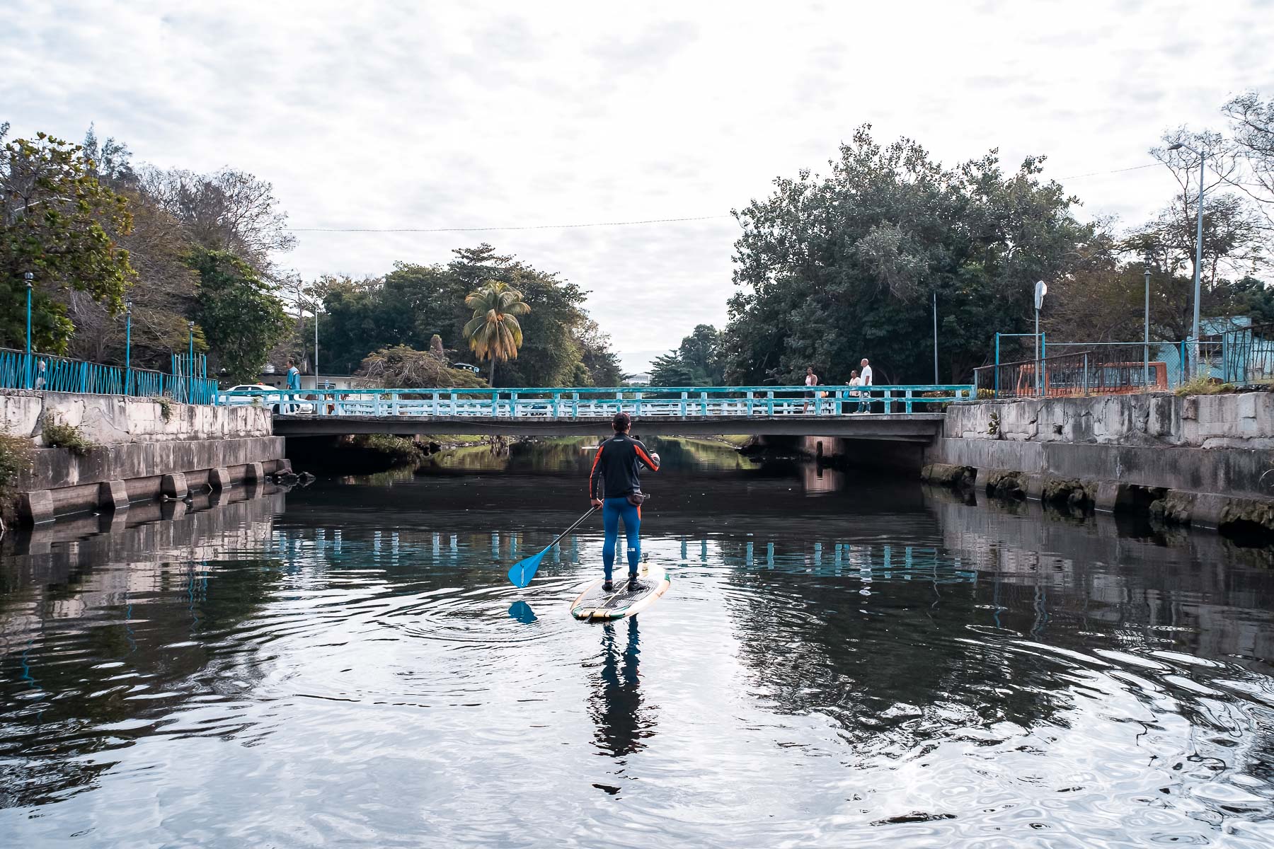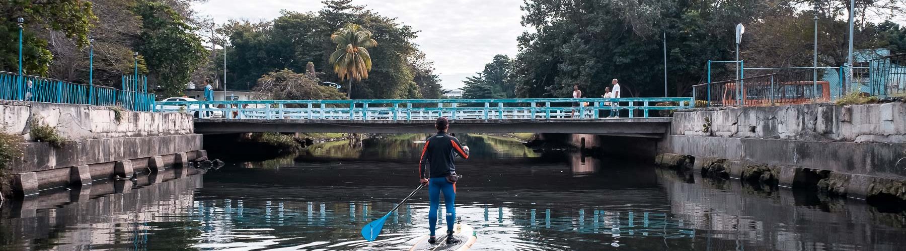 El fotógrafo Carlos Otero ha navegado en su tabla de Paddle Surf el río Quibú. Considerado uno de los más contaminados de la ciudad, el Quibú transita por 16 consejos populares de la capital en sus casi 20 kilómetros de recorrido. Cubanacán, Los Pocitos, La Lisa y El Palmar son algunos de ellos. Carlos, sin embargo, solo llegó hasta las escuelas de arte. No pudo navegar más allá del reparto Cubanacán porque dos pescadores de clarias le advirtieron que a partir de ahí el río no era navegable.