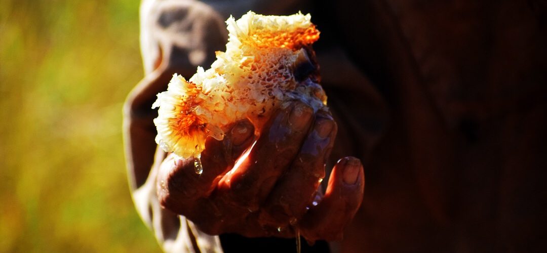 José Antonio va sacando cuadro a cuadro y los organiza en una carretilla. Cierra, abre otra, repite el proceso hasta terminar con las 22 cajas que hay en el claro, en dos hileras. Son ataques rápidos. Cada vez que destapa, aunque no da tiempo a que se vaya el humo, Andro aprieta el fuelle sobre la colmena así que trabajan en medio de una neblina pegajosa que sale de las cajas hasta el horizonte. Cuando hay 30 cuadros en la carretilla le toca a Luis: lleva la carretilla al desnatador, que es un barril cortado por la mitad, saca los cuadros y los desella con una cuchilla. Desellar es romper el edificio, sacar del cuadro las paredes de cera con todo y miel. Luego se centrifugan. La centrífuga separa la cera y vierte la miel en cubos. Los cubos de miel limpia van al barril, que tiene un colador en la boca, para quitar impurezas.
