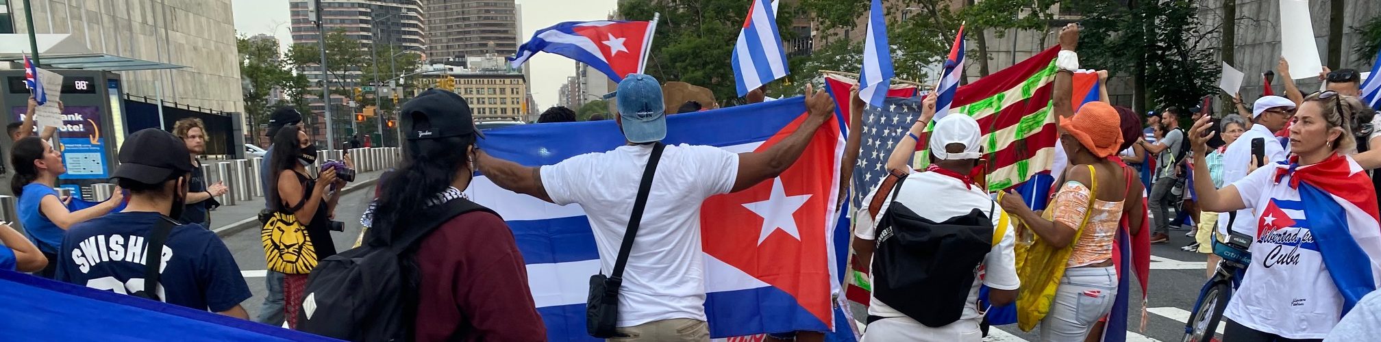En solidaridad con el pueblo de la Isla, los manifestantes de Nueva York se dirigieron a Michelle Bachelet, la alta comisionada de Derechos Humanos ante la ONU. Entre cantos y banderas, exigían un llamado oficial de la ONU al Gobierno cubano para respetar los derechos humanos, la libertad de expresión y de reunión, así como la liberación inmediata de los manifestantes cubanos que han sido violentamente detenidos en la Isla y se encuentran incomunicados.