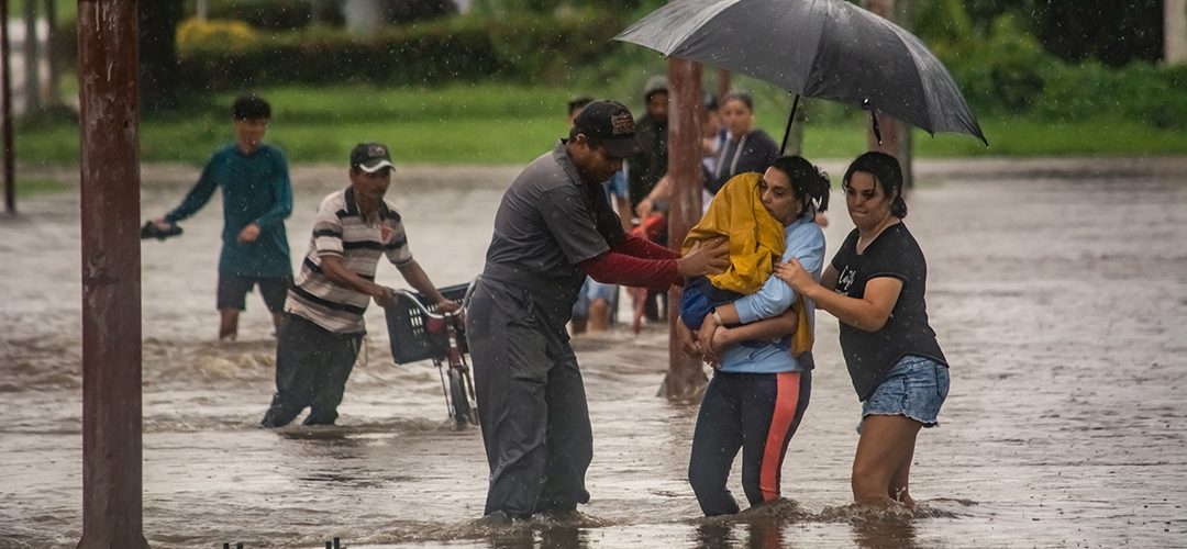Avenida de la Caridad. Personas ayudándose a atravesar las aguas (Foto: Diana Ros Iraola).