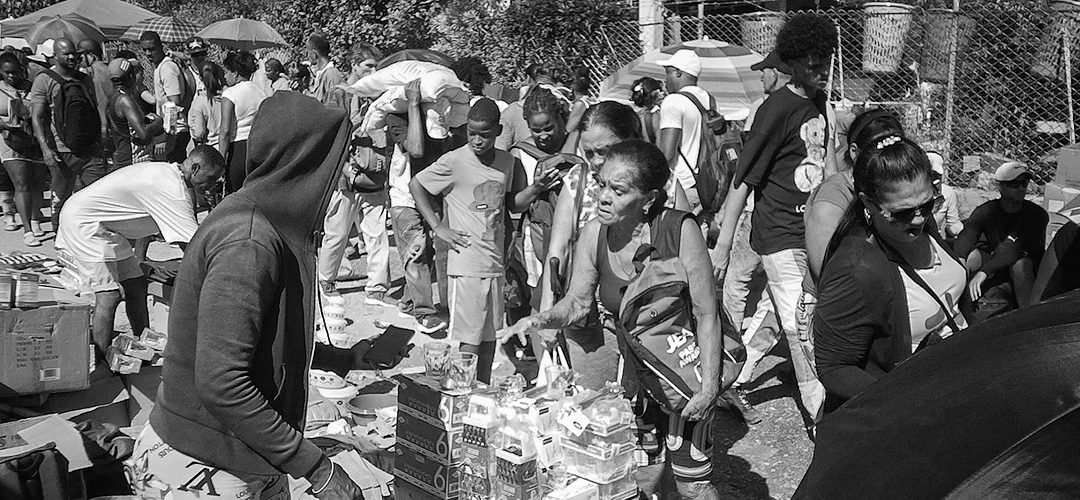 Jóvenes y mujeres con niños visitan los puestos de ventas en la feria para cuentapropistas. La Cuevita, San Miguel del Padrón (Foto: Adriano Alfredo Padura Hernández).