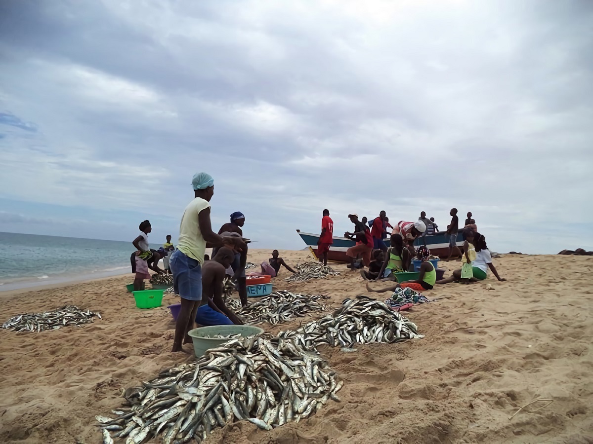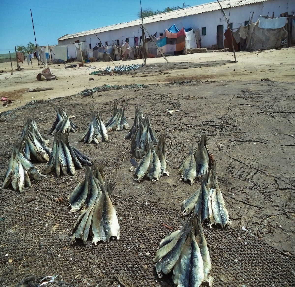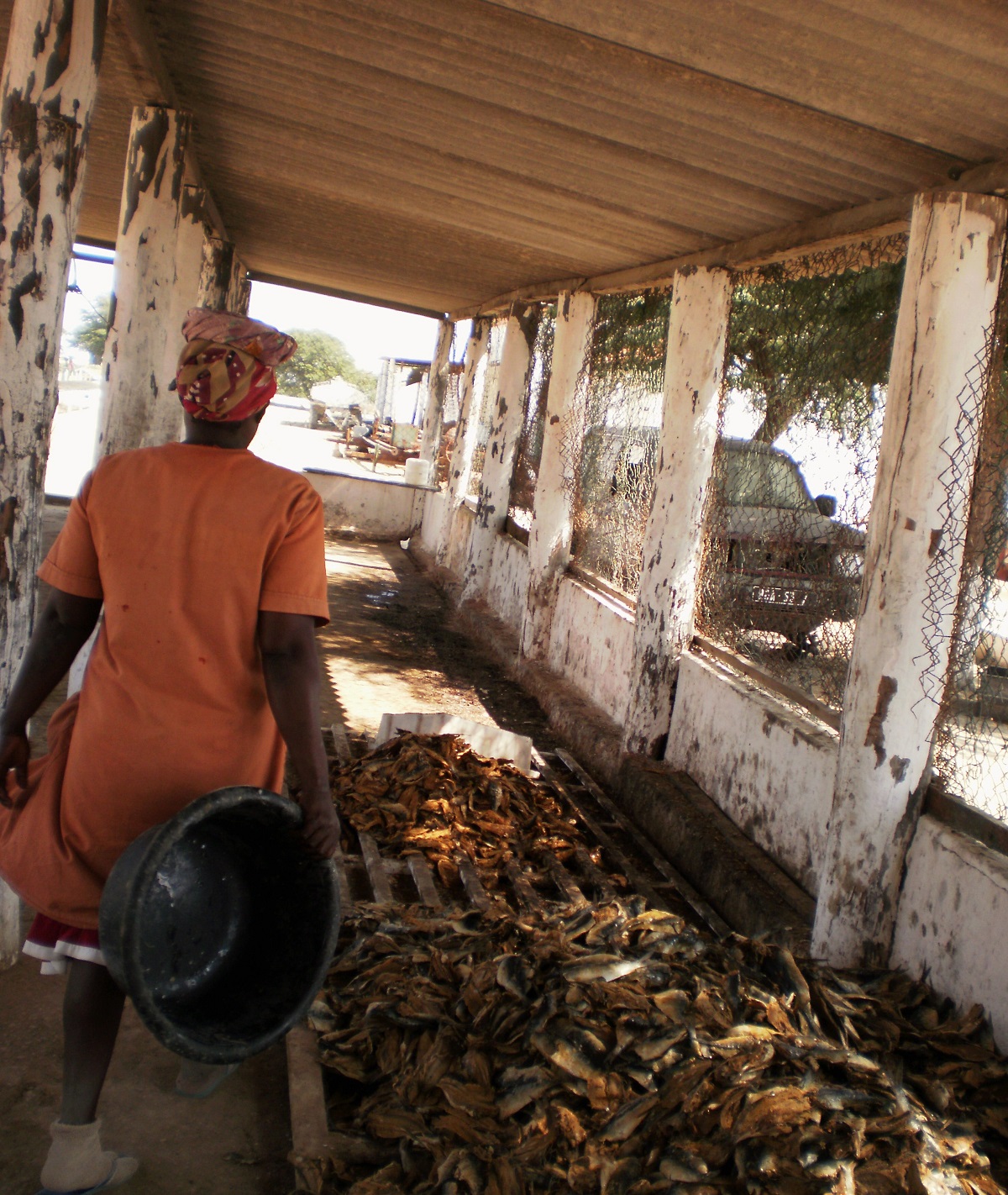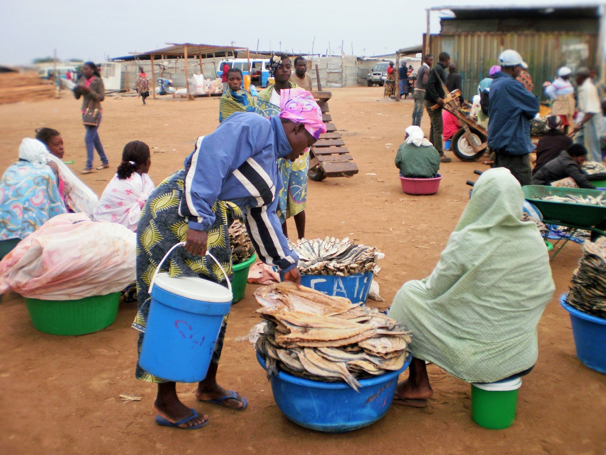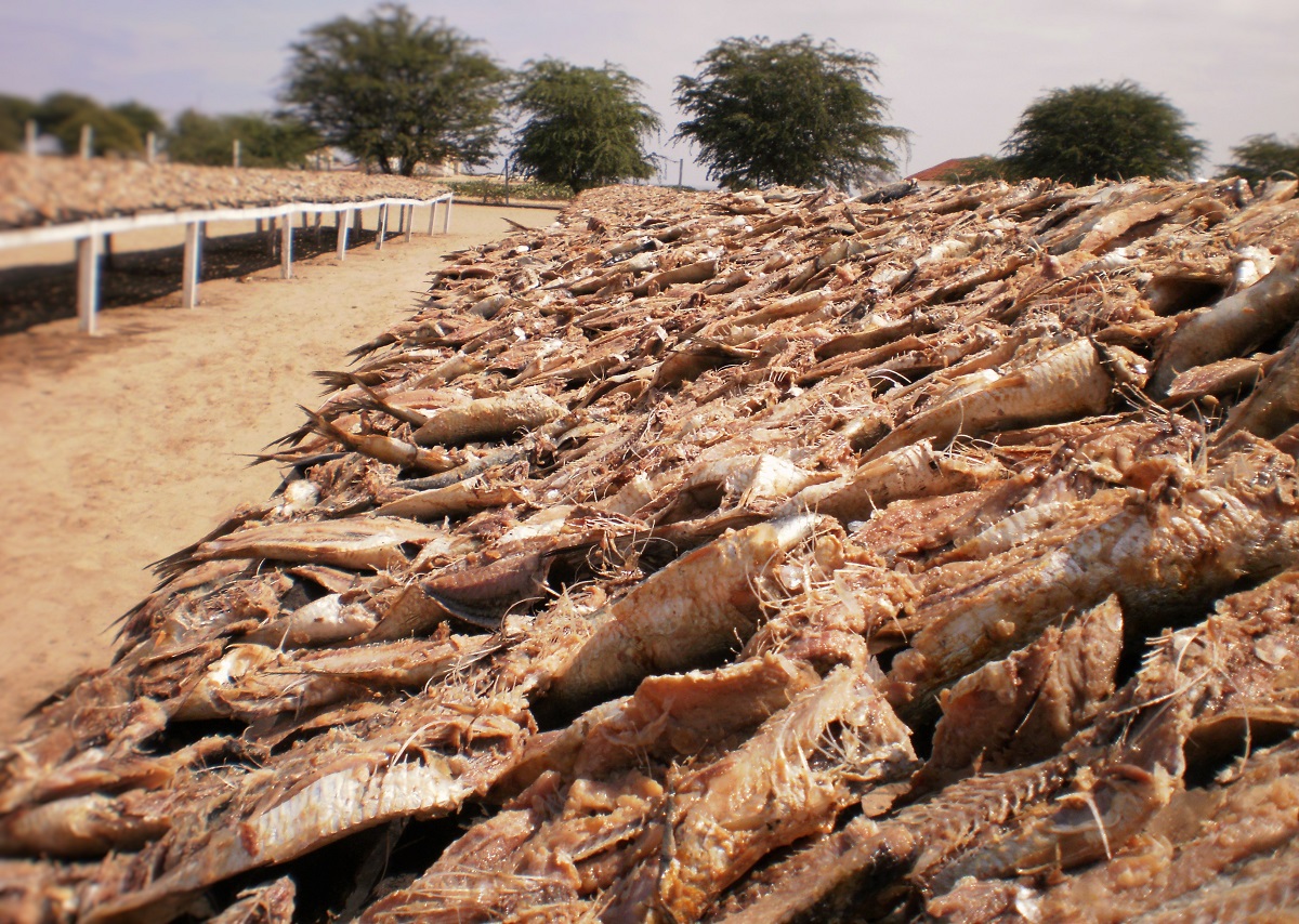 La poderosa Corriente de Benguela, que nace en las turbulentas aguas donde se unen los océanos Índico y Atlántico en el extremo sur, transporta una riqueza de incontables cardúmenes. Los pobladores rivereños aprovechan tal abundancia de peces en su dieta de subsistencia y en la elaboración y comercio de un producto característico de este asentamiento poblacional, fundado por portugueses en los comienzos del siglo XIX.