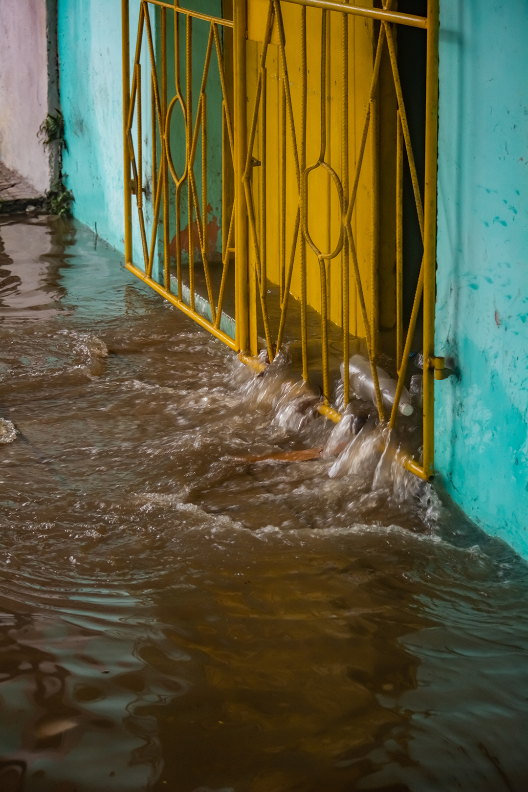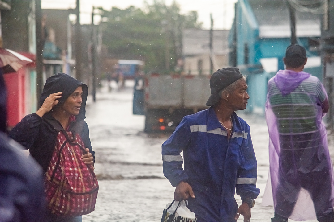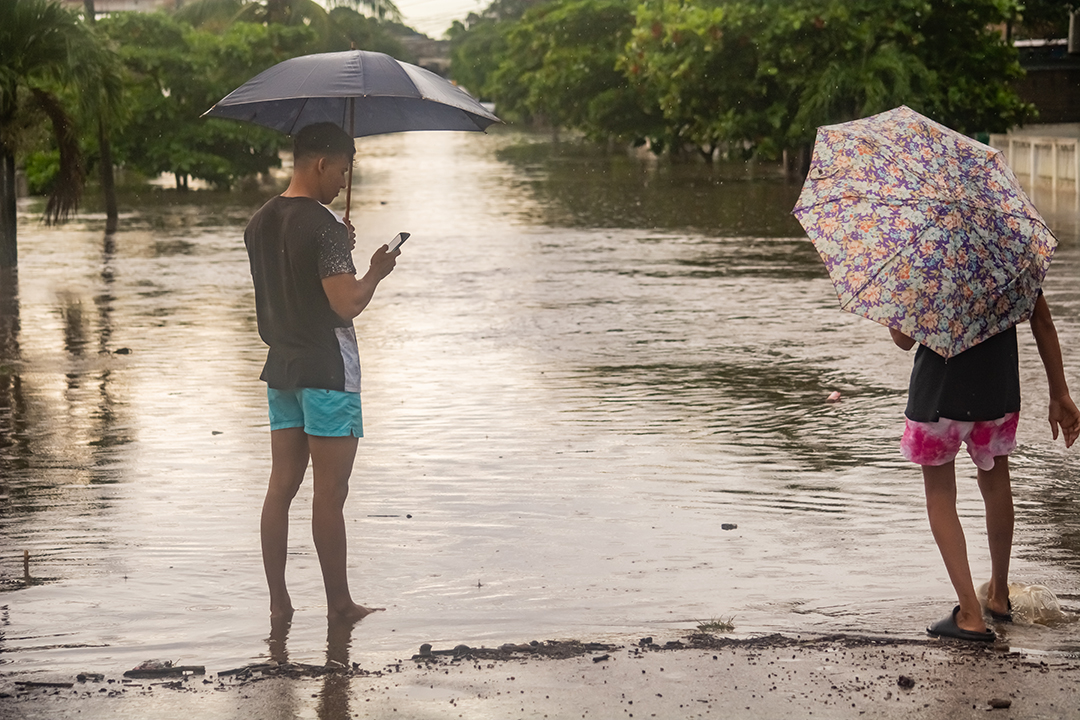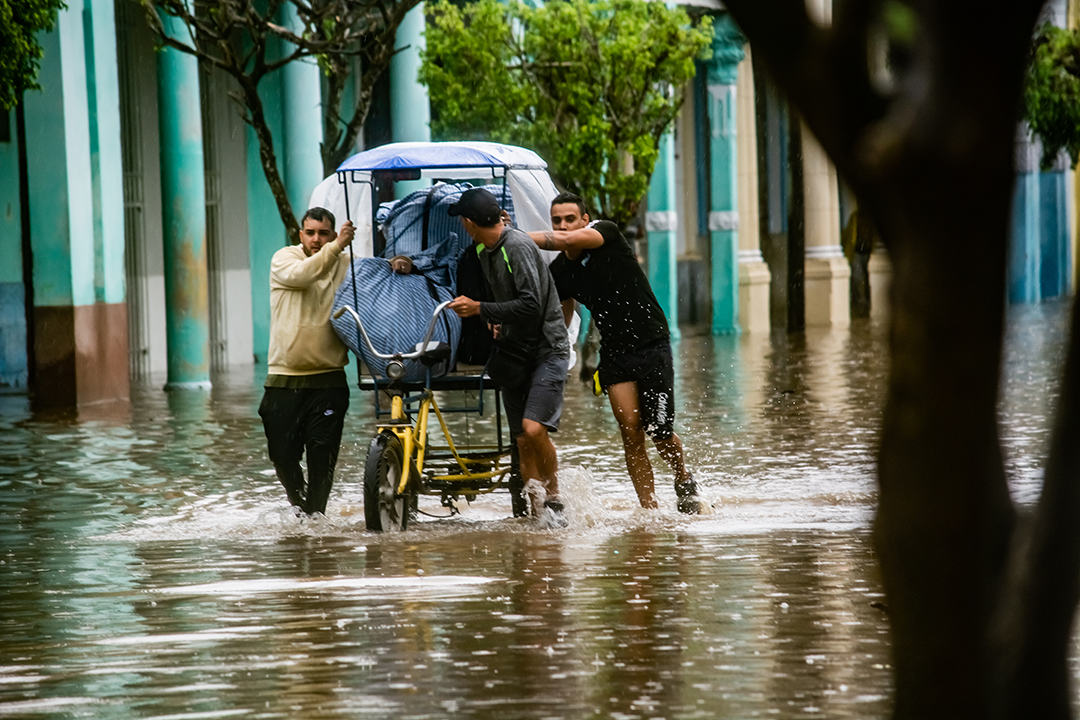 El 9 de junio salí a tomar fotos. El día avanzaba y varias personas comentaban sobre las inundaciones en los alrededores de los ríos Hatibonico y Juan del Toro. Caminé por la Avenida de la Caridad hasta encontrarme un río en vez de calle. Parecía una película. Casas escupiendo agua por la fachada; personas tratando de llegar de un lado a otro de la corriente; otros se sumergían en las aguas como si fuese un juego. A lo lejos, el cartel colocado hace poco para enaltecer la ciudad: “Camagüey, joya del patrimonio cultural cubano”.