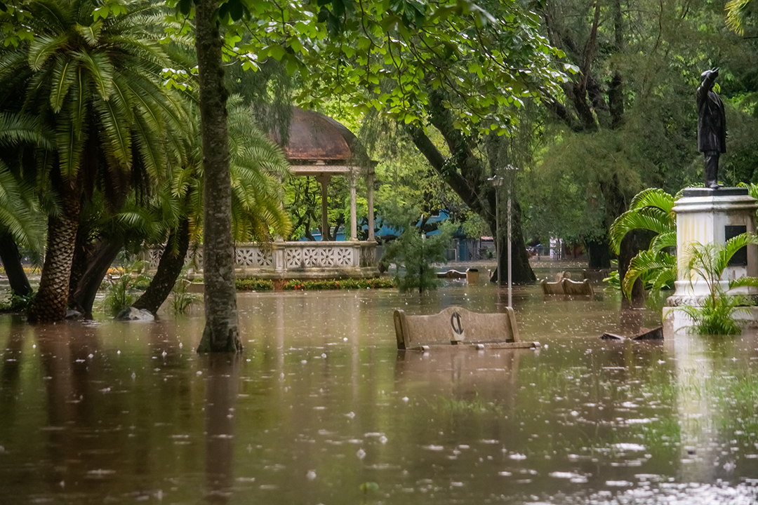 Seguí mi trayecto hasta el Casino Campestre, un parque lleno de vegetación que ahora parecía un humedal; el agua sobrepasaba la altura de los bancos. A lo lejos, el monumento a Salvador Cisneros Betancourt completamente inundado.