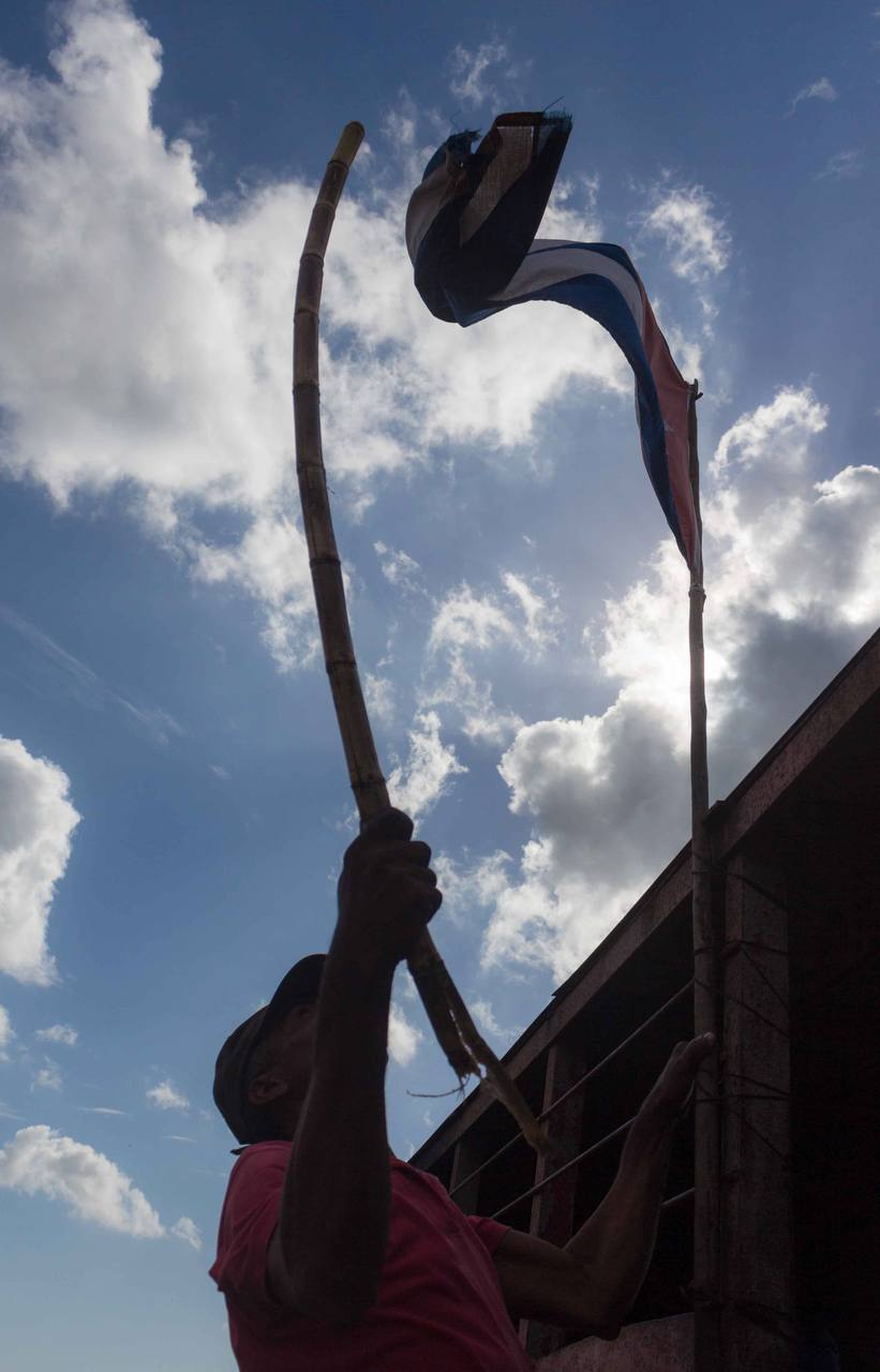 Durante un mes estuve persiguiendo a los trabajadores de la caña por los alrededores del Ingenio Manuelita, ahora Central 14 de Julio, en Cienfuegos. Cámara en mano, salía a buscarlos por los cañaverales y los encontraba manejando con habilidad enormes aparatos, cortando a mano malezas, arbustos, y la caña que dejan las máquinas, o limpiando las vías por donde pasan los vagones cargados.