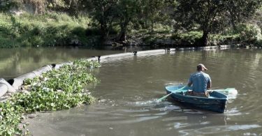 Cerca del puente del parque Metropolitano, en el río Almendares, se instaló una barrera artesanal...