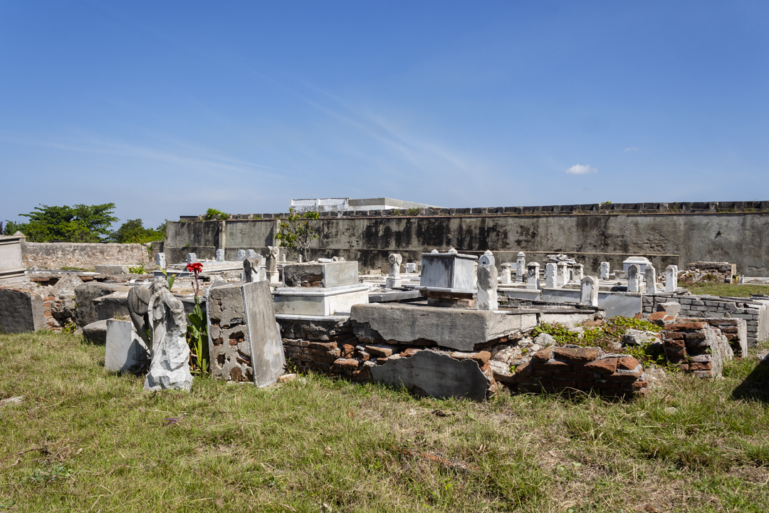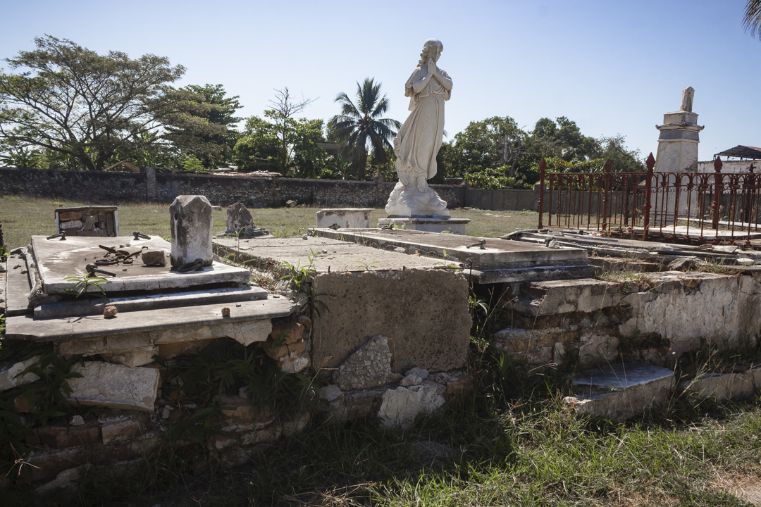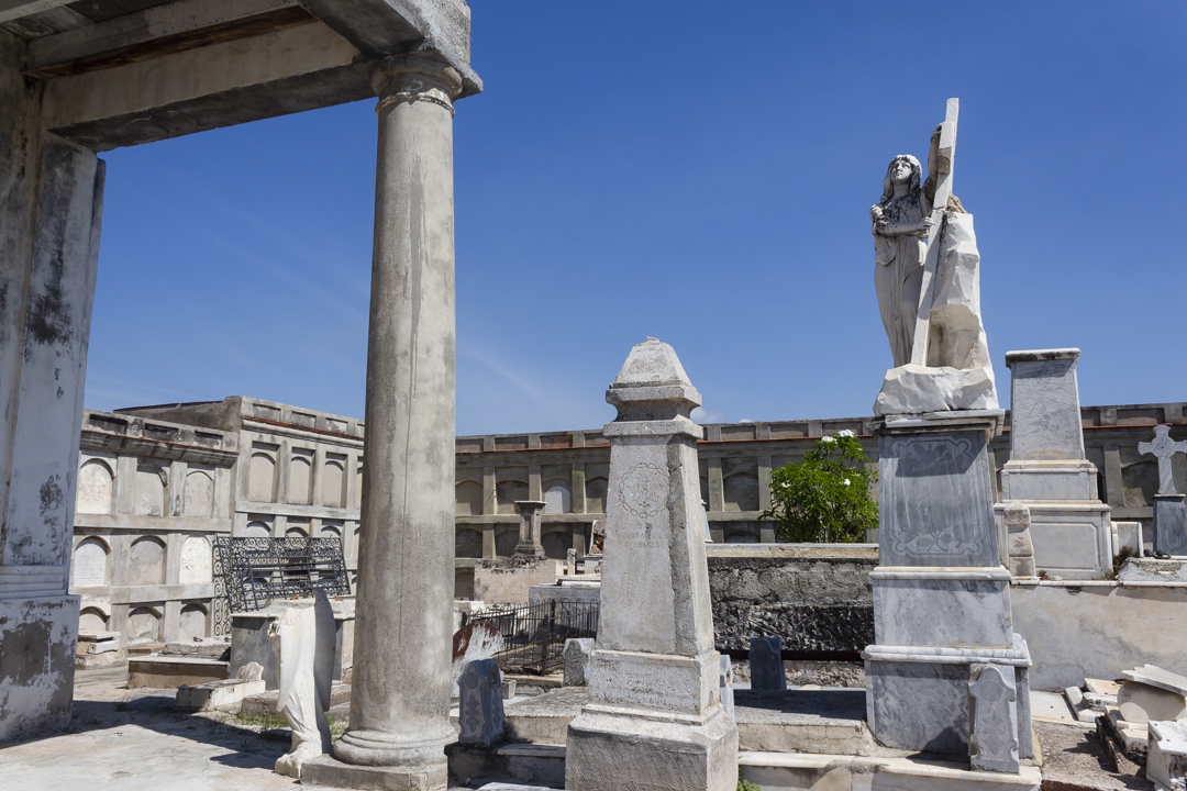 A lo largo del tiempo, los estragos del clima, especialmente por su ubicación cercana al mar, y el creciente descuido, han afectado a los monumentos y otras áreas del cementerio. Estructuras como los ángeles de los sepulcros han perdido sus cabezas y alas, y la oxidación ha debilitado las rejas y los muros con nichos verticales, poniendo en riesgo su integridad. Tumbas rotas, la hierba que implacable se las traga, las esculturas fuera de su pedestal, truncas y sucias, son otros de estos daños.