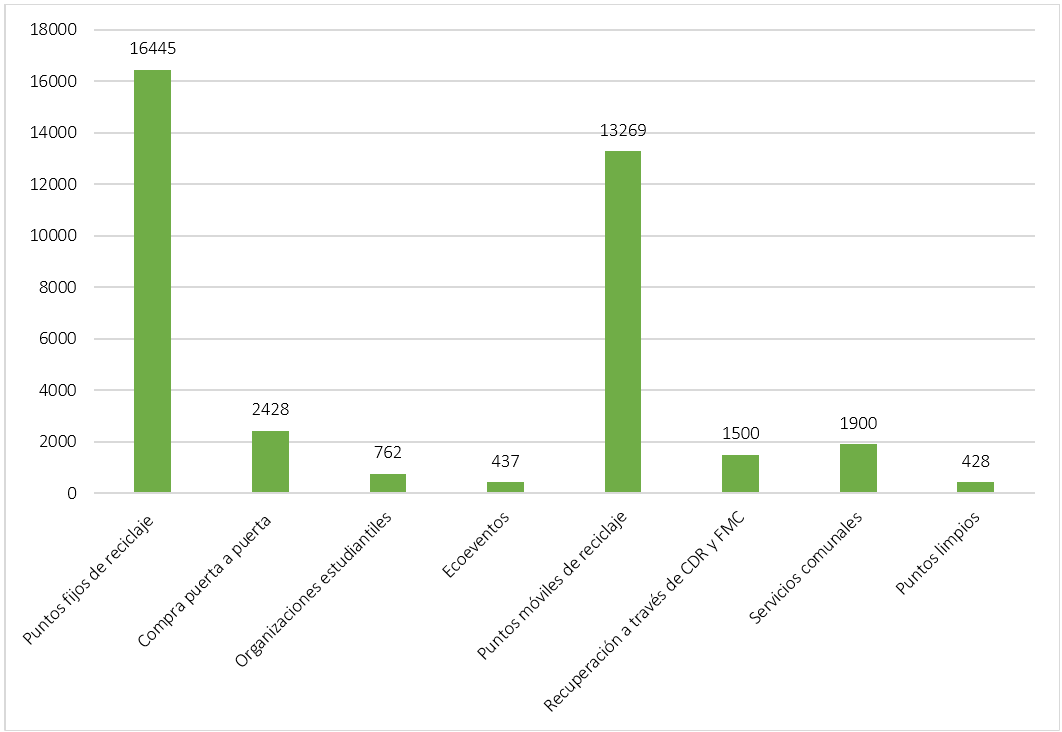 Tales acciones lograron la recogida de 74.000 toneladas hasta septiembre de 2023, de las cuales la mayor parte de las procedentes de la población provenía de los puntos fijos de reciclaje.