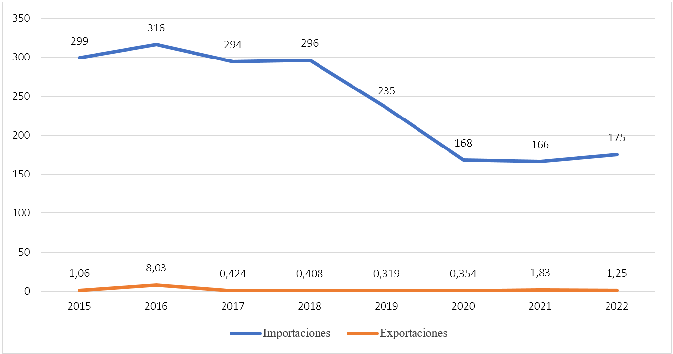 Si bien el país exporta plástico, las importaciones son considerablemente mayores, con una brecha anual de más de 100 millones de USD de 2015 a 2022, de acuerdo con datos del Observatorio de Complejidad Económica (OEC), por sus siglas en inglés.