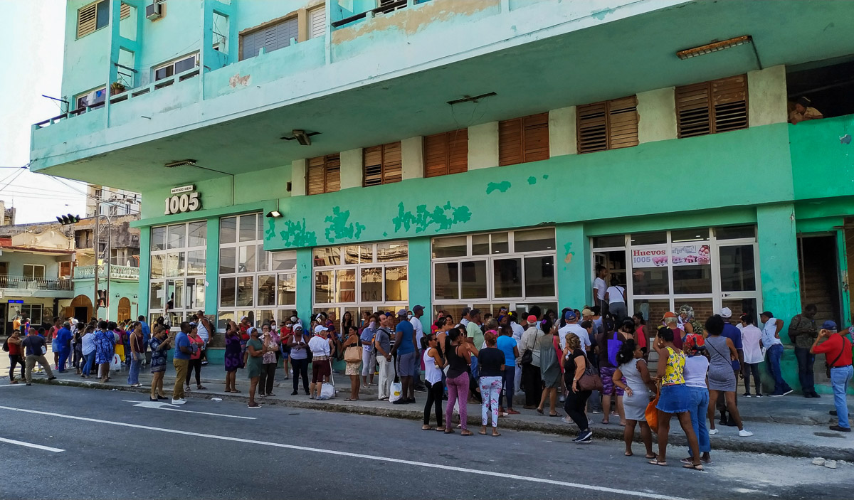 Un custodio en la reja de la tienda y policías en la esquina. De vez en cuando pasa un patrullero. Los que salen explican que cada persona tiene derecho a dos latas de atún, dos paquetes de picadillo, cuatro barras de mantequilla y un pomo de mayonesa. Desde que salió el primero la gente se abalanzó a preguntarle. Y al segundo, al tercero, como si alguien fuera a informar que el asunto cambió de un minuto a otro y hay nuevos productos o tocan más.