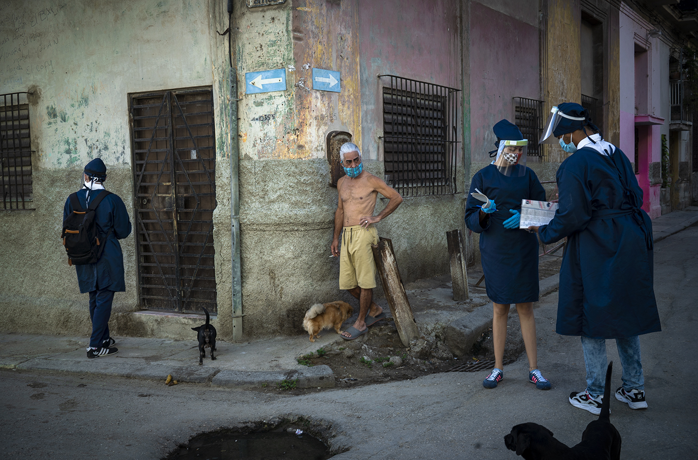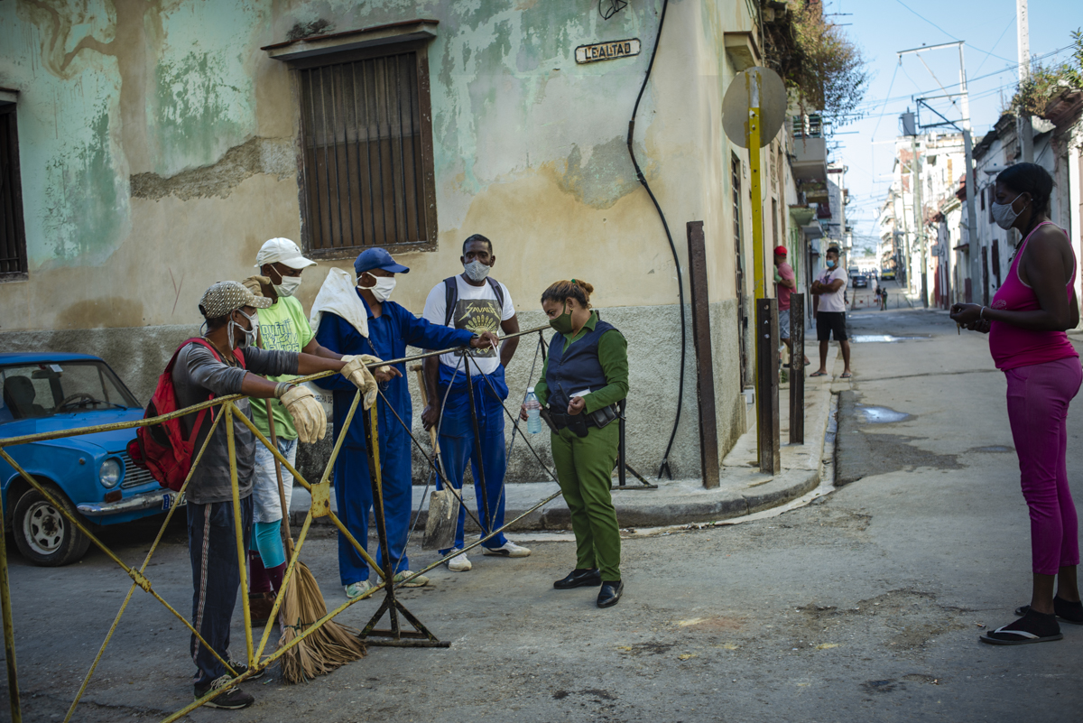 A las 6:00 p.m. nos encerraron. Colocaron rejas y policías; nadie podía salir, salvo por algo muy justificado. Por suerte mi barrio, a pesar de todos los lamentos, es uno de los barrios más felices de La Habana. Entonces, en la cuarentena el ambiente parecía una fiesta, los vecinos se asomaban a los balcones y a las puertas de sus casas, tocaban música y bailaban; incluso conocí a vecinos que nunca había visto.