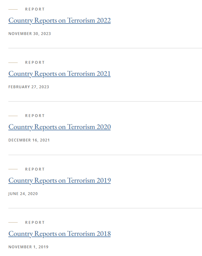 Entonces, el anuncio de que Cuba ha salido de la lista de países que no cooperan con la lucha antiterrorista ha sido informado en la fecha prevista para la actualización de este listado. ¿Y cuándo se actualiza la lista de países patrocinadores del terrorismo? Si revisamos el sitio web del Departamento de Estado que se dedica al reporte por países sobre terrorismo, podemos apreciar que, si bien solía publicarse a finales de año, en los últimos periodos el patrón ha ido cambiando.