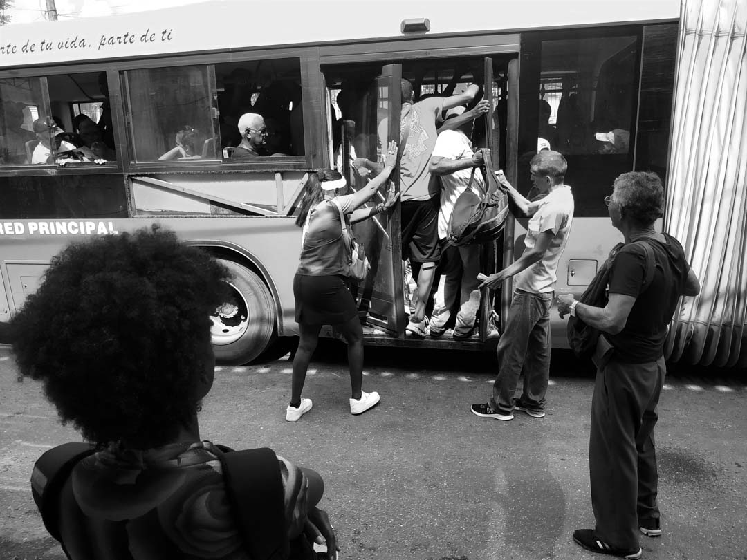Cuba se encuentra sumida en una crisis general. La crítica situación del transporte en la capital, aunque roza el colapso, es incomparable con la que impera en el resto del país. Paradas repletas, horas de espera, incertidumbre, guaguas desbordadas, fatigas, malos olores, empujones y peleas para poder trasladarse; una situación sin perspectiva de mejora.