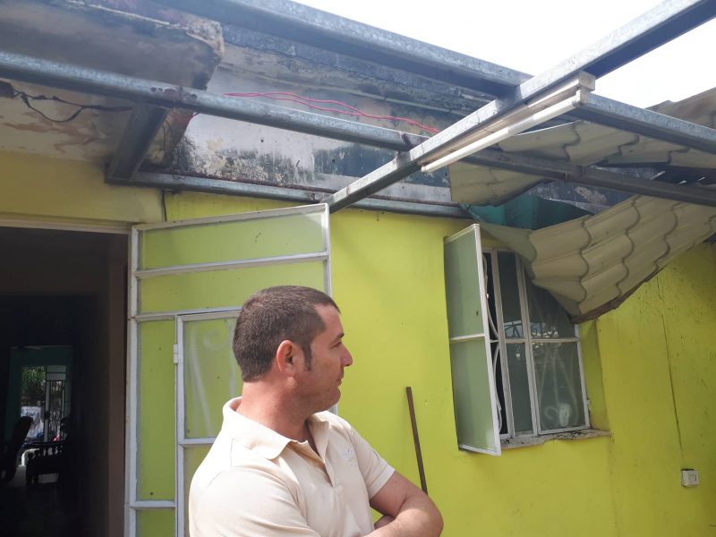 Lucy anda con unas botas de trabajo muy toscas. Tira agua en la sala. Acomoda trastes mientras espera a su esposo que fue a buscar galletas, pan y refrescos, porque no hay electricidad y nadie sabe cuándo volverá. Me presenta a su vecina Idalmis. Dice Idalmis que su hija estaba en la calle cuando vio la bola roja que era el tornado arriba de la casa. Su hijo de 20 años volvía del trabajo con tres amigos cuando el tornado le voló encima y tuvieron que refugiarse detrás de un contenedor de basura. El contenedor no aguantó, empezó a correrse y los empujó a ellos cuatro. Su hijo tiene un golpe en el hombro, una costilla lastimada y rasguños en la cara, pero uno de los que andaba con él se dio golpes en la cabeza y está grave. El hijo de Idalmis salió con su hermana a cargar los teléfonos celulares, pero Lucy asegura que fue así, que ella vio los golpes.