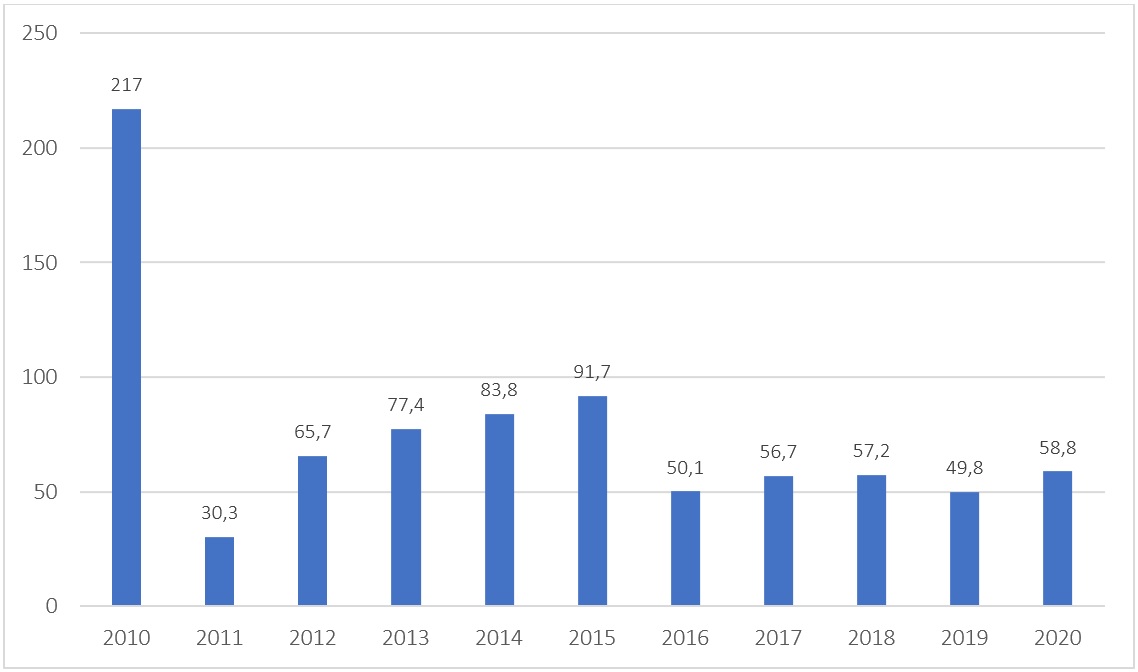 Solo de 2010 a 2020, el país ha gastado más de 800 millones de dólares estadounidenses en comprar este producto.