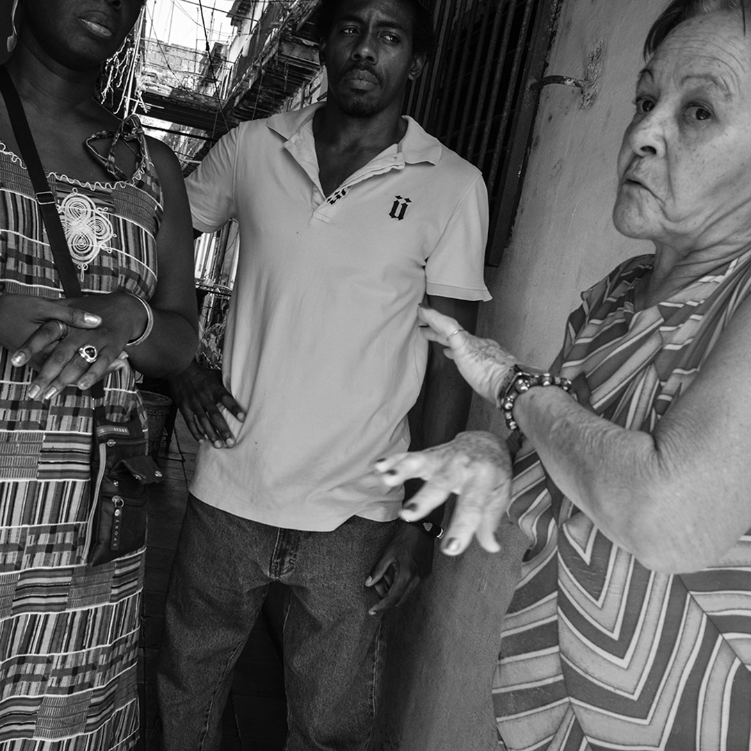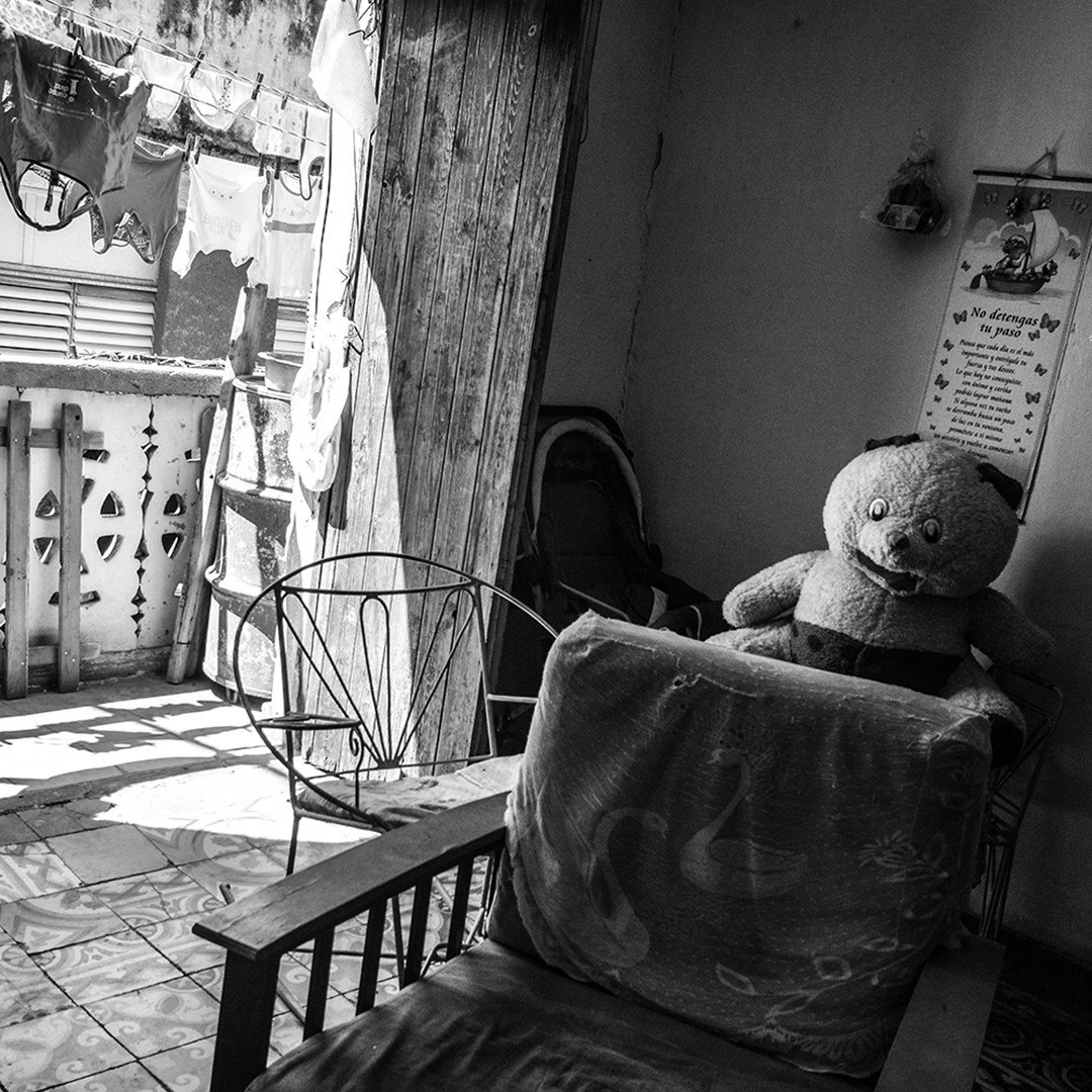 Una madre y su hija adolescente están sentadas afuera de su puerta. Viven ahí desde que la niña era bebé y no tienen esperanzas de mejorar. Hace 10 años están en una lista de espera de Vivienda. “Aquí se olvidaron de nosotros”, me cuenta, mientras le pasa el peine a su hija. “Me han ofrecido domicilio en las afueras de La Habana, pero mi madre y hermano viven aquí en Belén. ¿Qué hago yo a tres horas de la ciudad, en medio de la nada y sin transporte?”.