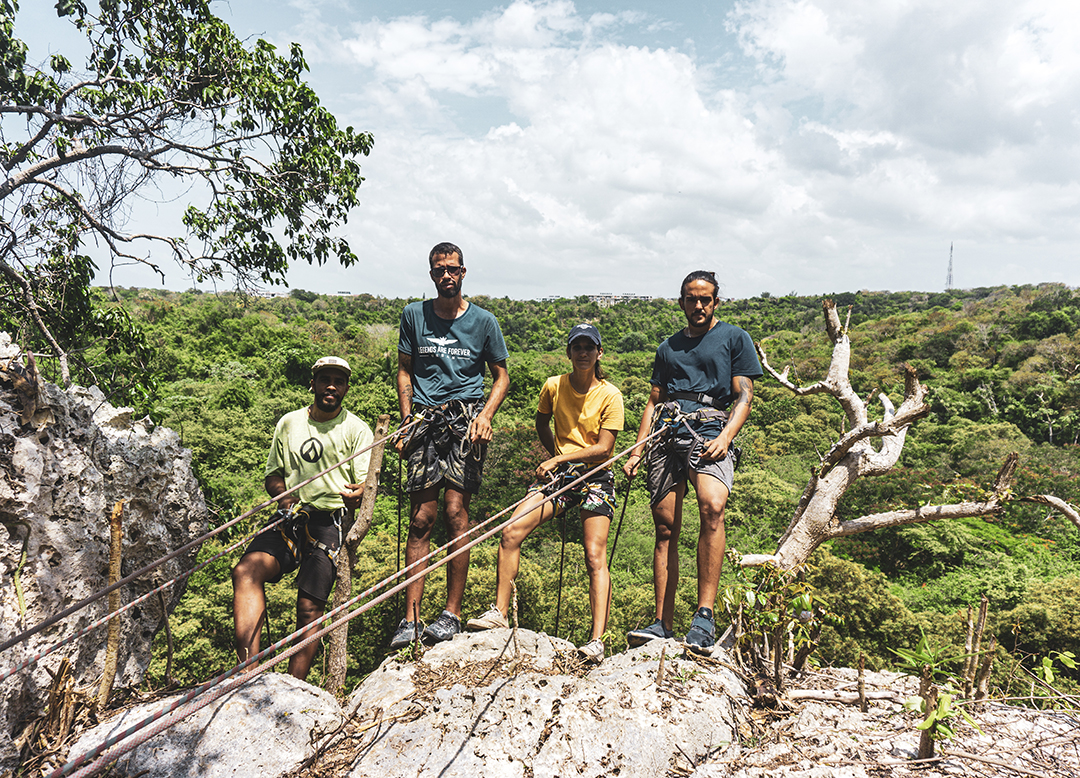 Luis, Rafael, Sheila y Carlos aman la aventura, la adrenalina. Hace dos años descubrieron la piedra en la que hoy escalan y desarrollan su proyecto Cojímar Escape.