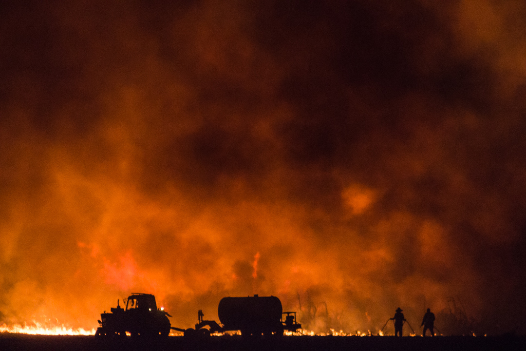 En la mañana solo quedaba humo y cenizas, pero aun así había tarea por hacer, debían cosechar la caña quemada que pudiese ser aprovechada antes de que se secara por completo. Aunque este fuego quedó impreso en mi memoria, para los vecinos es algo que olvidarán pronto, como un evento común que pueden presenciar en cualquier temporada de sequía.