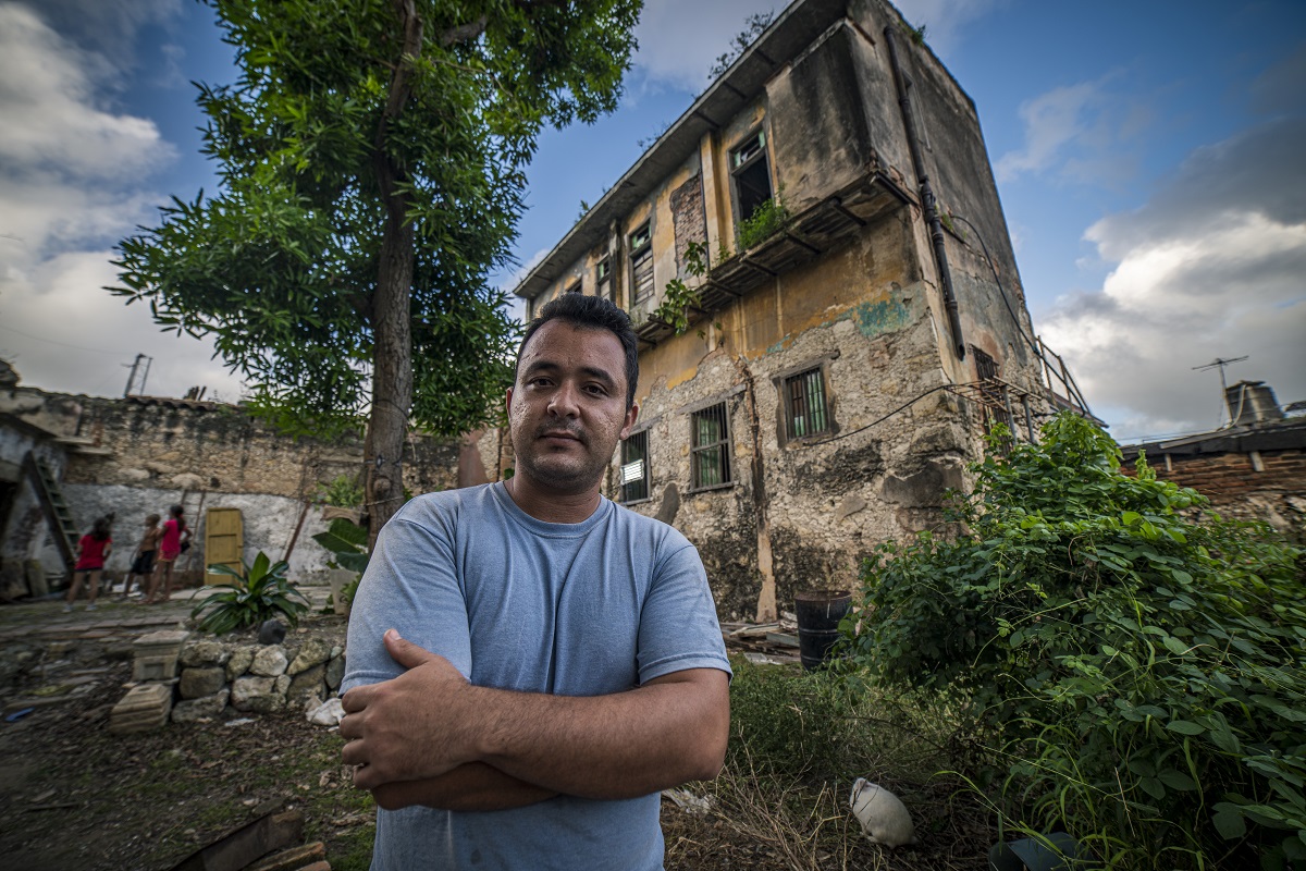 Se la compraron a un sobrino del artista: portal, sala, patio interior, patio trasero y al fondo una construcción de dos plantas: en la superior dos habitaciones; abajo, baño, cocina y saleta. Es un lugar inmenso, pero arruinado, en calle Nazareno entre Maceo y Luz. Yúnior no tiene idea de cuánto puede costar reconstruirlo.