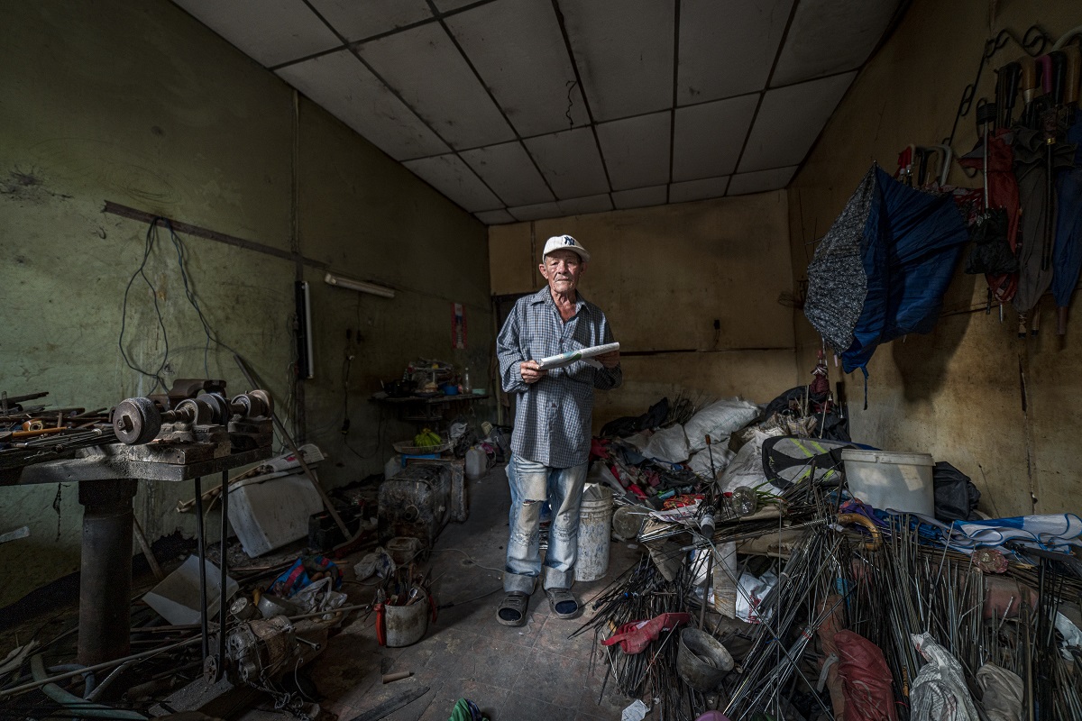 “Vivo aquí hace 18 años. Aquí me dedico a arreglar sombrillas, pero ya nadie arregla sombrillas porque la gente necesita el dinero para comprar comida.