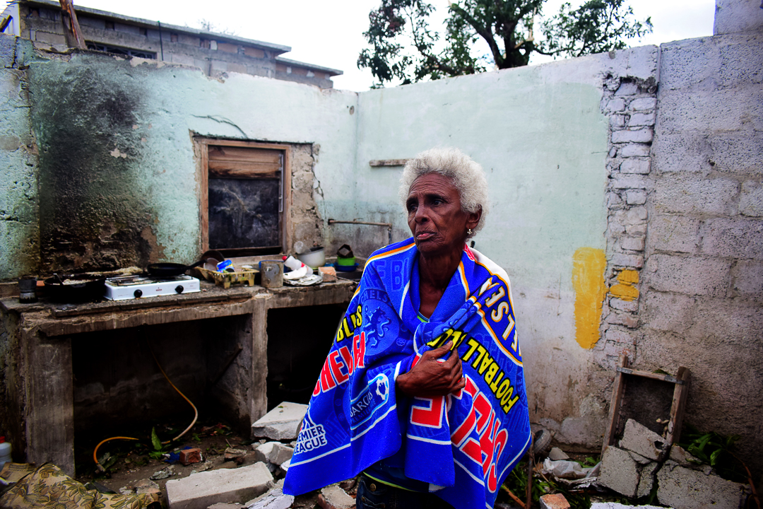 María de los Ángeles no confía. Tiene 63 años y está sola en los restos de su casa, que es un cuarto con una cama húmeda y poquito más. María de los Ángeles va a dormir hoy en casa de su nieto, cerca de la suya, pero ella no quiere ser un problema y mucho menos quiere ir para un albergue. María de los Ángeles espera ayuda. Algo, lo que sea. Sabe que puede estar años esperando. Está ahí, parada, sola, tiritando; casi segura de que no tener casa es no formar parte de ningún país.