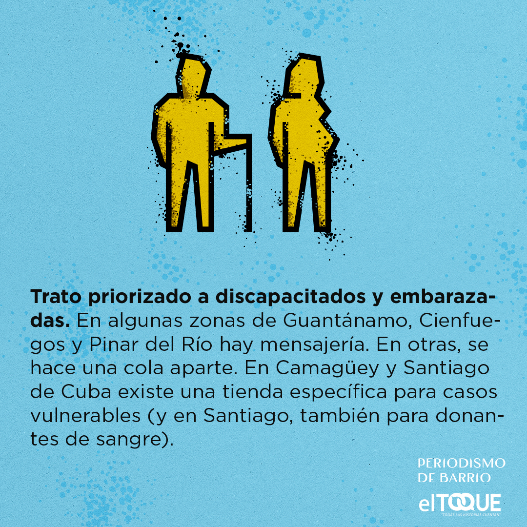Para lograr una imagen panorámica de las iniciativas adoptadas con el propósito de garantizar al máximo el acceso a las pocas ofertas de productos en Cuba, desde elTOQUE y Periodismo de Barrio entrevistamos a 22 cubanos de 14 provincias acerca de las limitaciones, atenciones especiales y procedimientos para comprar alimentos y aseo en pesos (CUP) y moneda libremente convertible (MLC) en sus respectivas localidades. Las estrategias fueron aplicadas indistintamente en territorios de Pinar del Río, Artemisa, La Habana, Mayabeque, Matanzas, Villa Clara, Cienfuegos, Sancti Spíritus, Ciego de Ávila, Camagüey, Las Tunas, Granma, Santiago de Cuba y Guantánamo.
