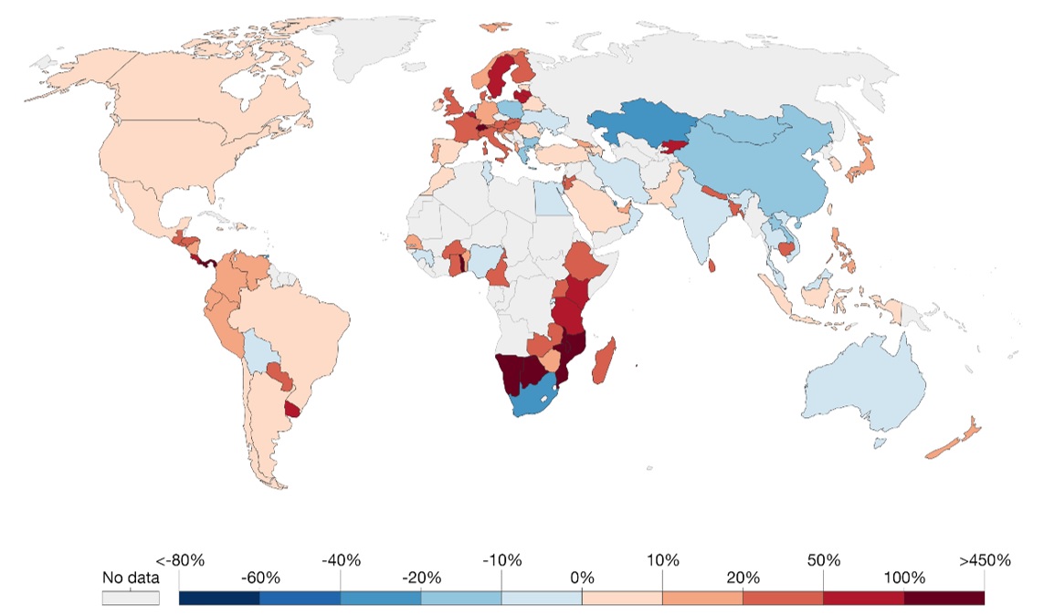 La metodología de emisiones territoriales ocasiona una transferencia de emisiones, donde los países de altos ingresos deslocalizan la producción de sus industrias más contaminantes hacia otras naciones y luego importan los bienes y servicios intensivos en carbono. Ello permite establecer una diferenciación entre aquellos países que son importadores (mostrados en rojo en el mapa) y exportadores (mostrados en azul en el mapa) netos de emisiones.