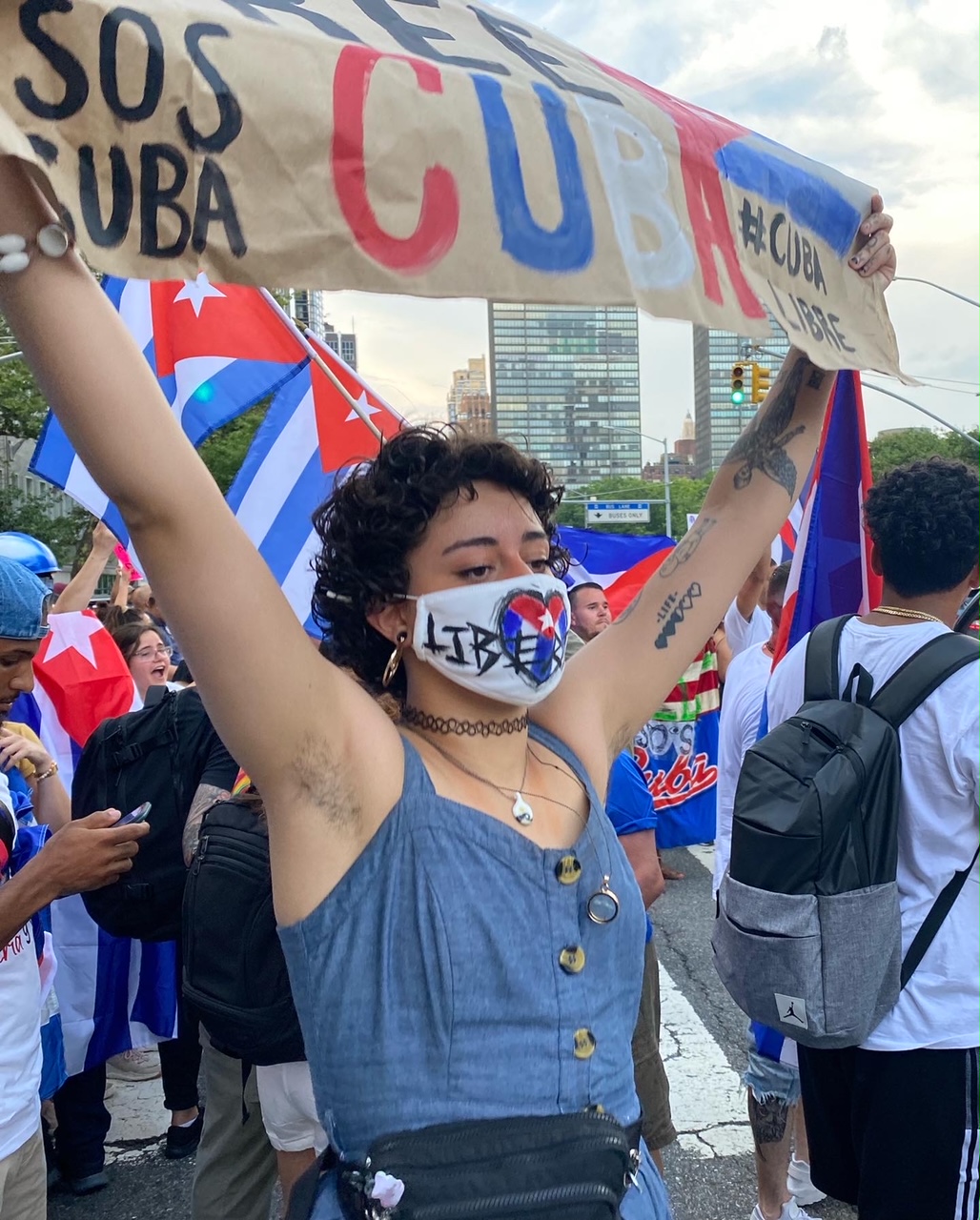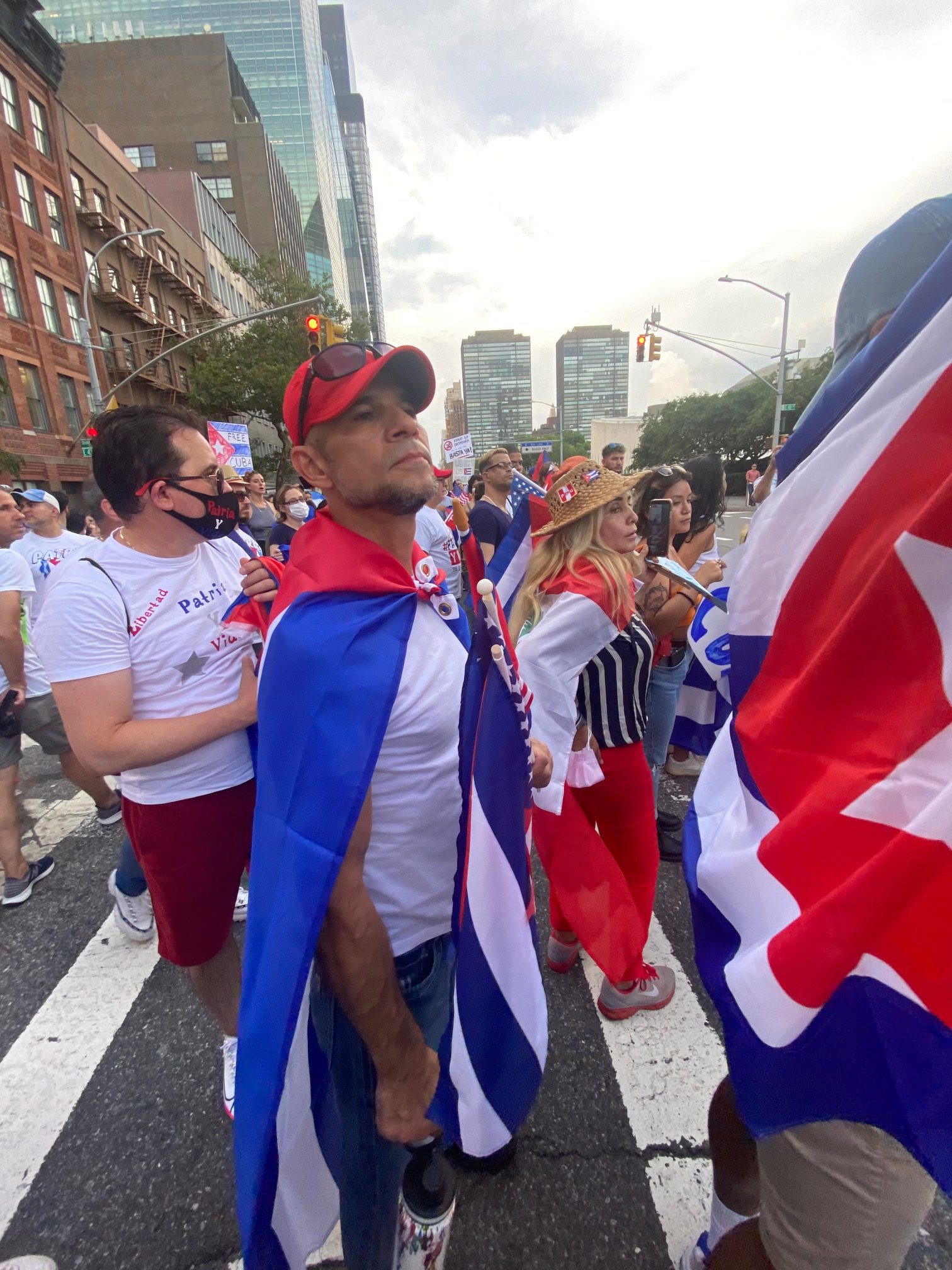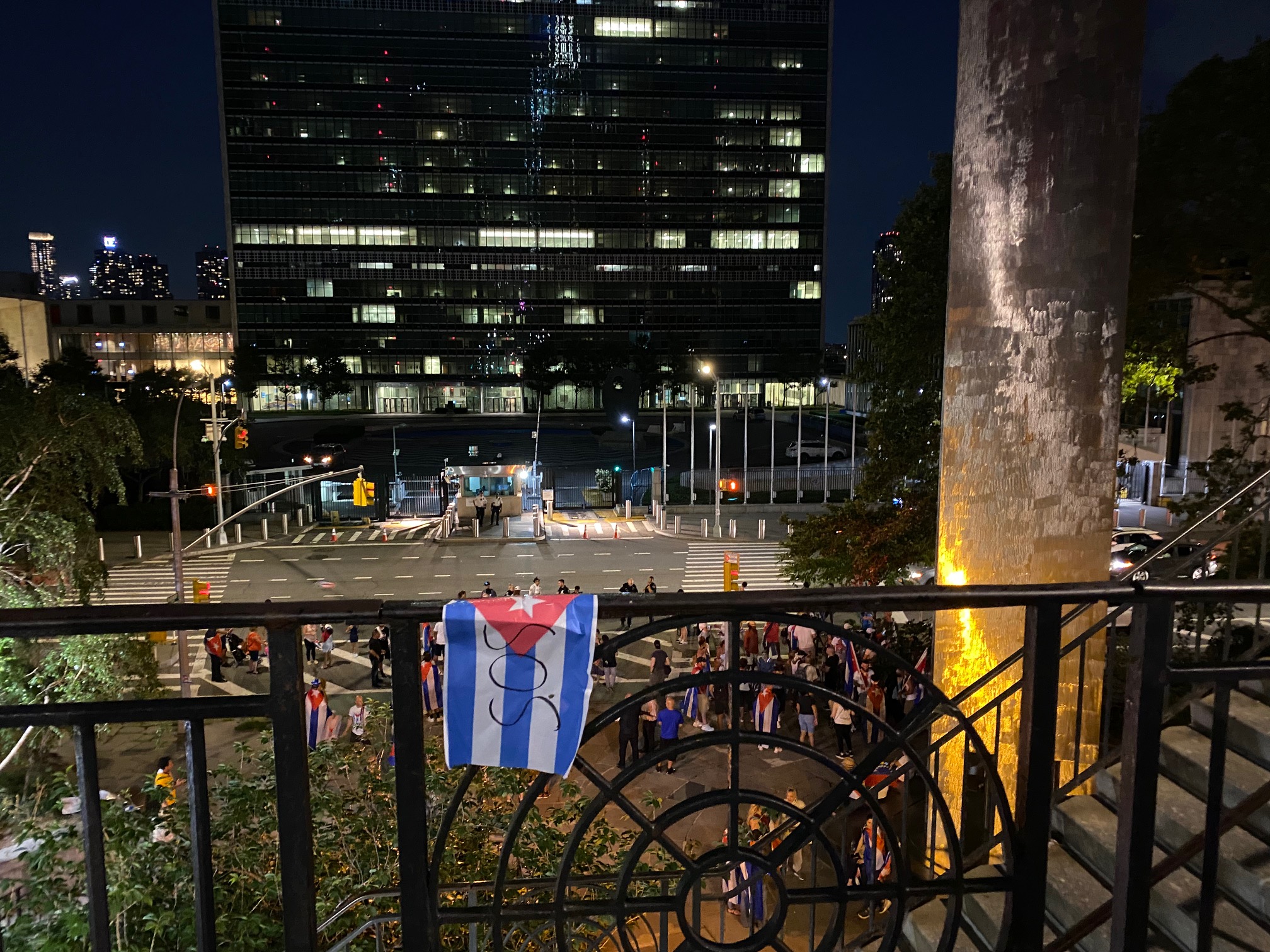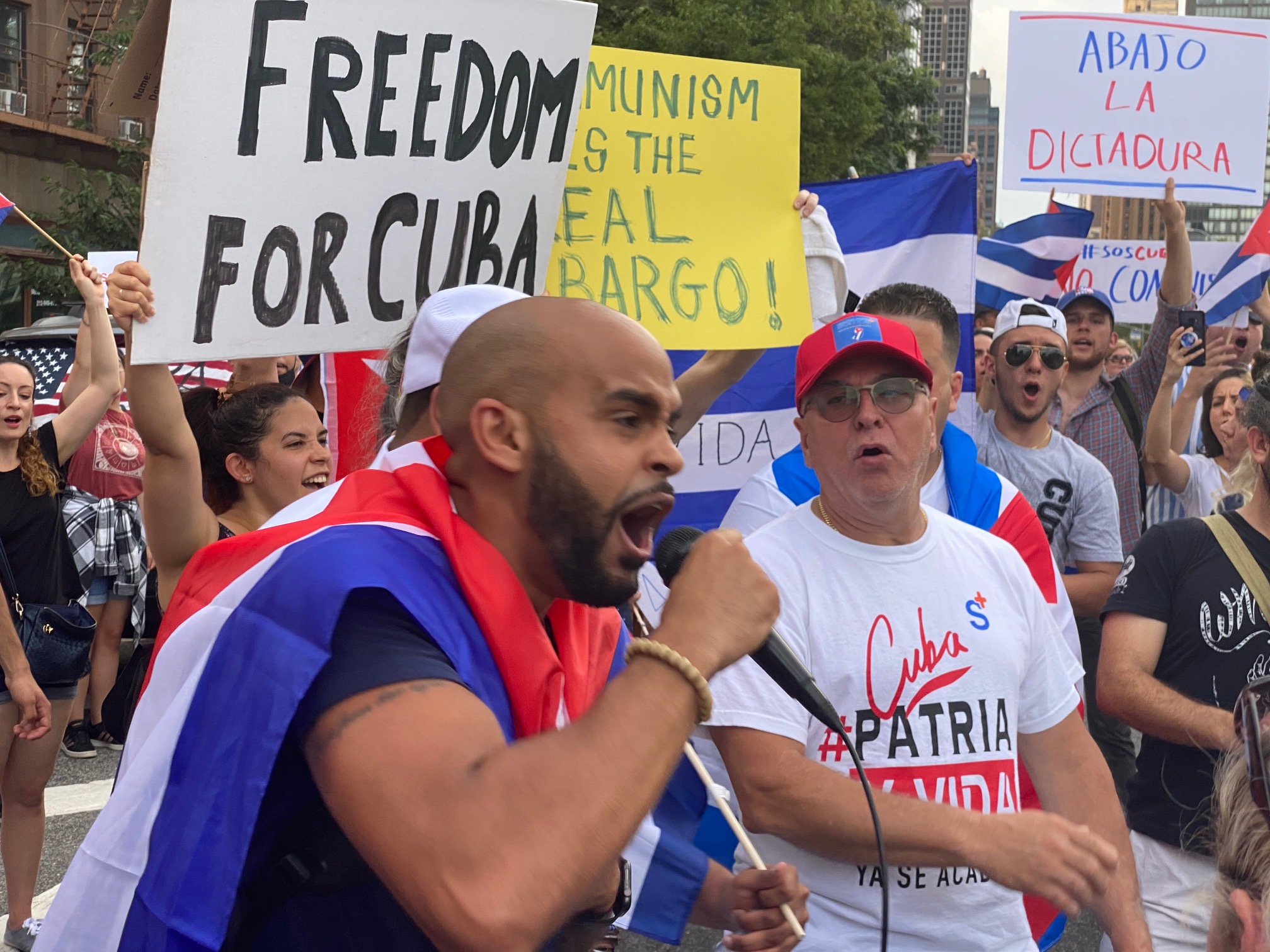 En solidaridad con el pueblo de la Isla, los manifestantes de Nueva York se dirigieron a Michelle Bachelet, la alta comisionada de Derechos Humanos ante la ONU. Entre cantos y banderas, exigían un llamado oficial de la ONU al Gobierno cubano para respetar los derechos humanos, la libertad de expresión y de reunión, así como la liberación inmediata de los manifestantes cubanos que han sido violentamente detenidos en la Isla y se encuentran incomunicados.