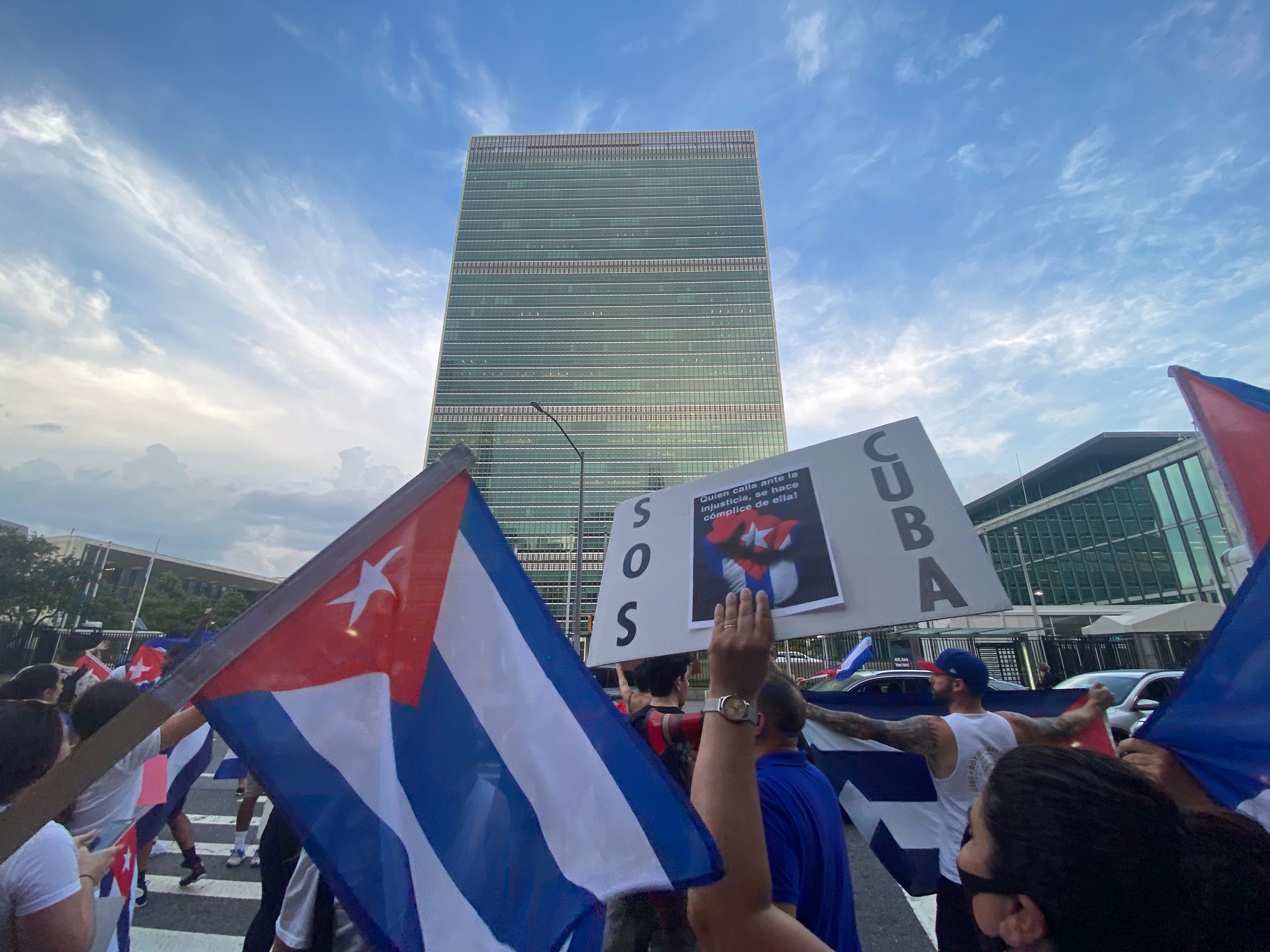 El pasado viernes 16 de julio, aproximadamente 300 personas –en su mayoría cubanos o de ascendencia cubana–, se manifestaron frente a la sede de la Organización de las Naciones Unidas (ONU) en Manhattan, como respuesta a las recientes protestas masivas ocurridas en Cuba.