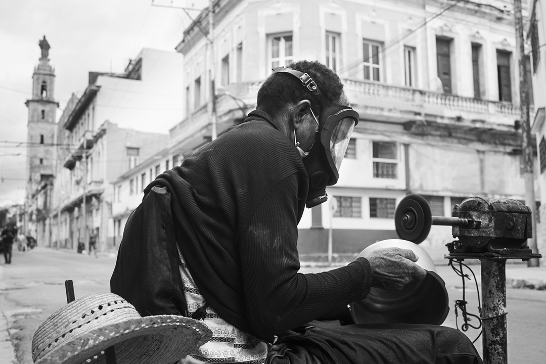 Desde hace cuatro años, Rolando el guantanamero limpia ollas y pule cazuelas por las calles de La Habana. Enciende su máquina criolla con la corriente del primer vecino que requiera sus servicios, hace dos o tres encargos y sigue su camino.