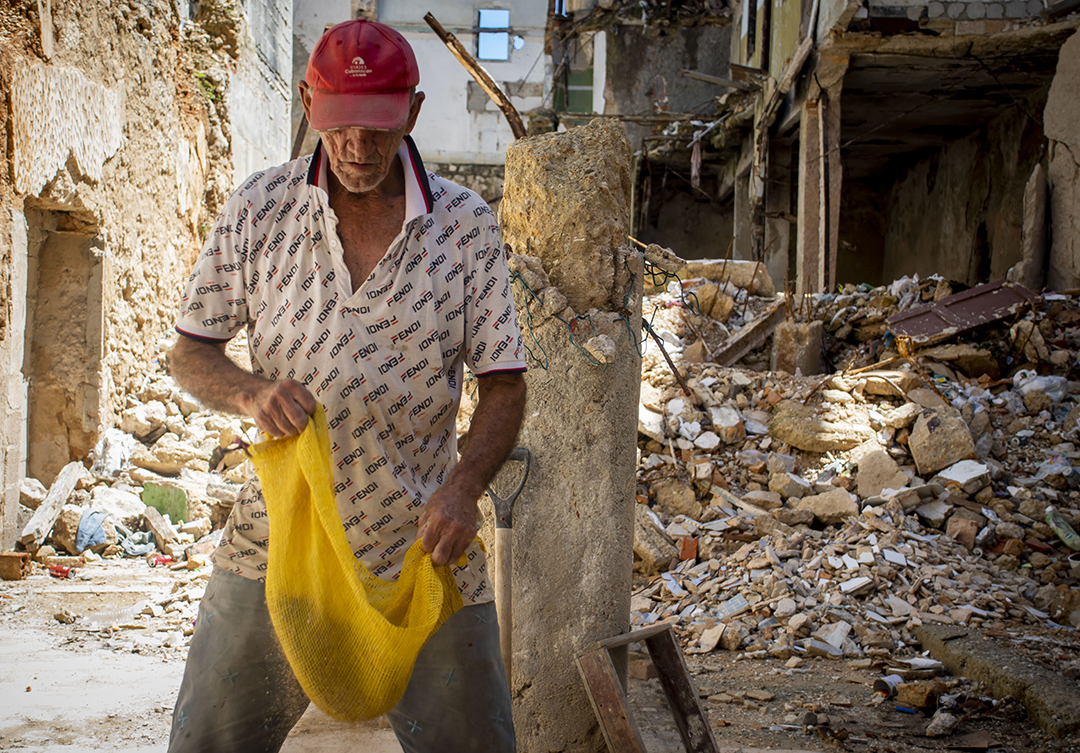 Nacido en Gibara, Holguín, Juan Aguilera Marrero ha tenido que enfrentar múltiples dificultades a lo largo de su vida. Sin embargo, su determinación y voluntad de salir adelante lo han llevado a buscar otras oportunidades y a no rendirse ante las adversidades. A pesar de haber trabajado para el Estado durante 25 años, no tiene una chequera que le garantice un ingreso fijo y estable. Por eso, se encuentra trabajando entre los escombros de un edificio en ruinas del municipio Habana Vieja, buscando ganar algo de dinero de forma independiente.