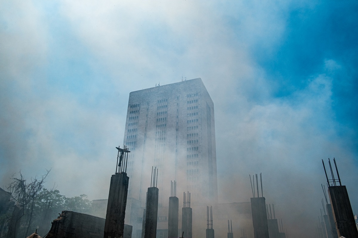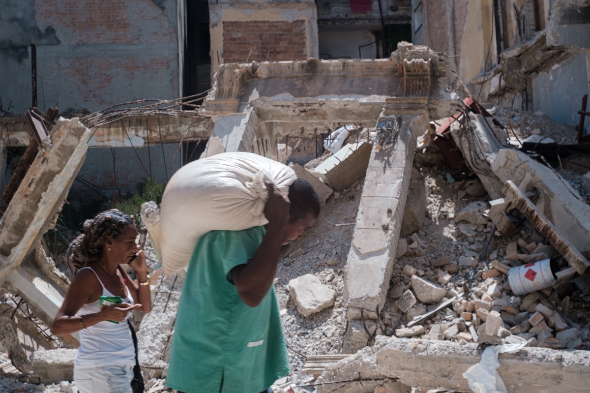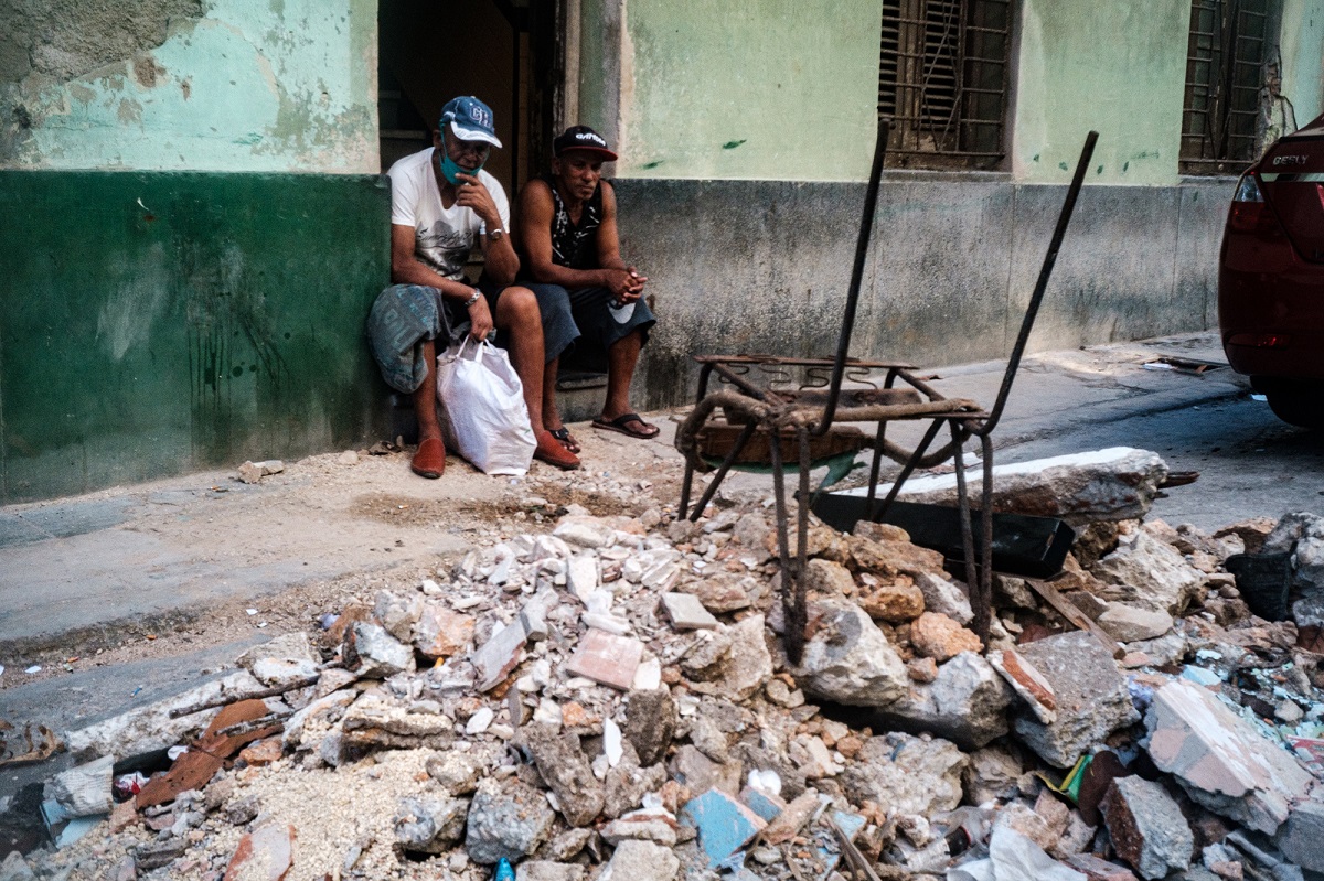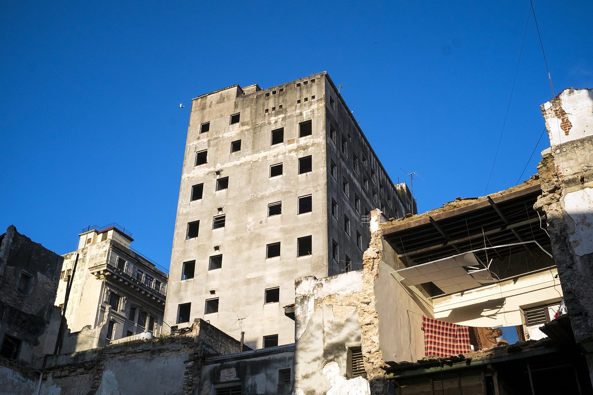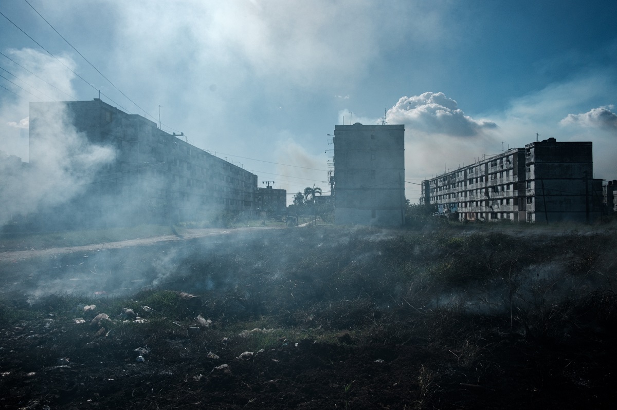 Sobreviene a mi alrededor tanta información sobre una guerra que no es nuestra, posiciones y opiniones divididas, que observo diferente el entorno. El humo capta mi atención, frente a mí un área de campo en llamas y unos edificios al fondo con cierto estilo soviético. Llegan los bomberos, muchachos jóvenes. Se escuchan órdenes de apagar el fuego y algunas personas se apresuran para huir del humo. No lo había visto tan claro antes: en La Habana parece que han caído bombas, La Habana parece Kiev. Tanta destrucción, edificios desplomándose, escombros en las esquinas, basura por doquier. Fue entonces que comencé a buscar la influencia soviética en La Habana, intentando simular lo que estaba ocurriendo en el otro lado del mundo; es que de alguna manera el deterioro y el influjo de la URSS que existe en nuestro país consiguen representar escenas de una guerra que parecieran reales gracias a la gran decadencia que sufre esta ciudad.
