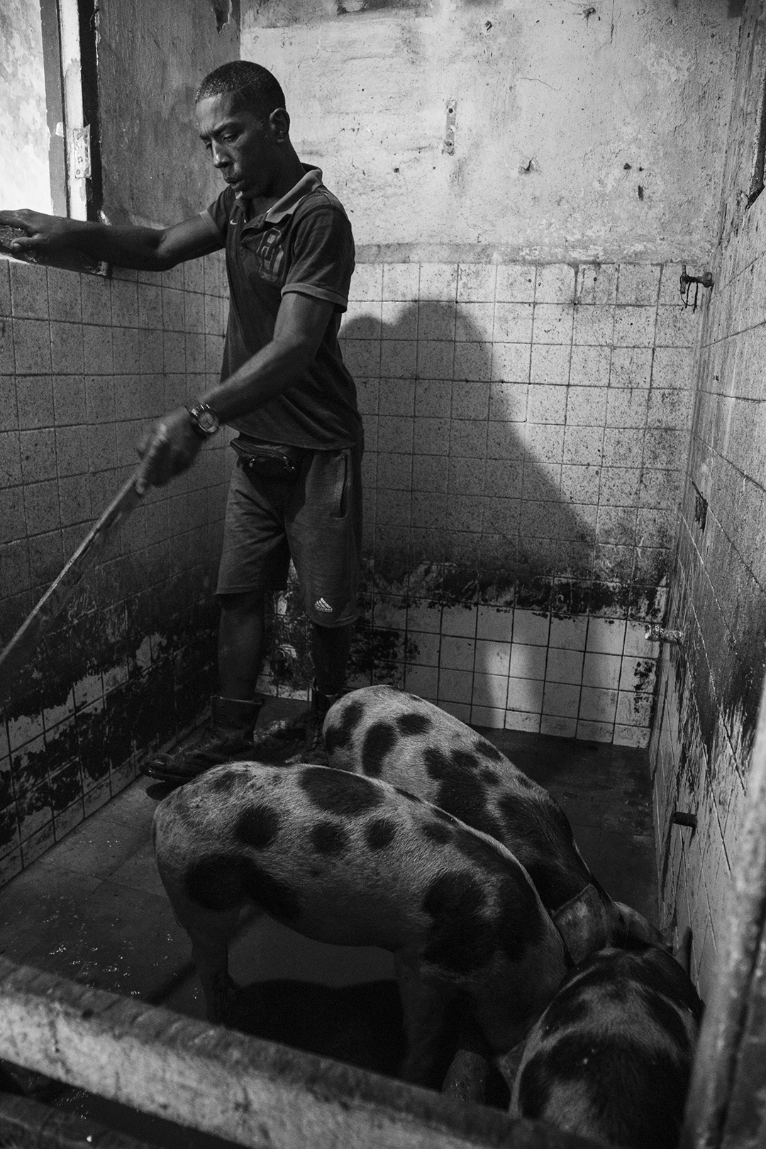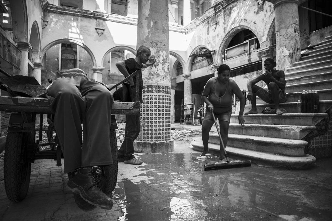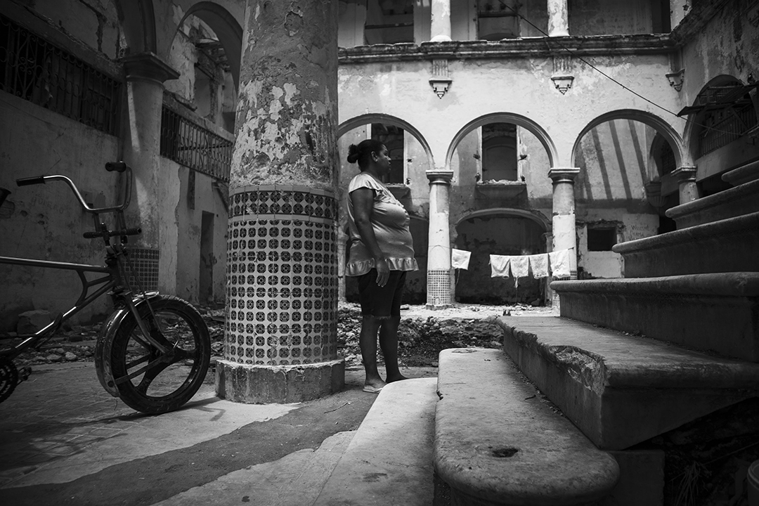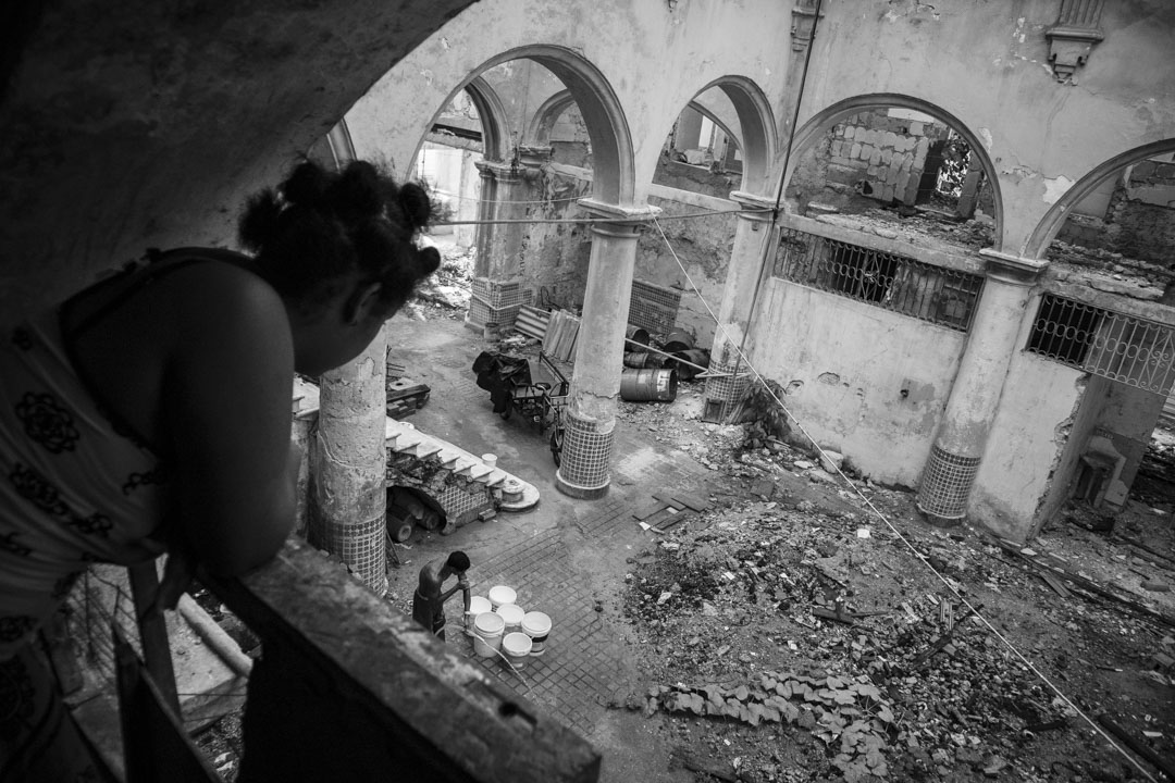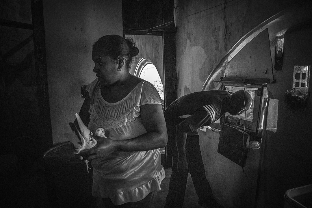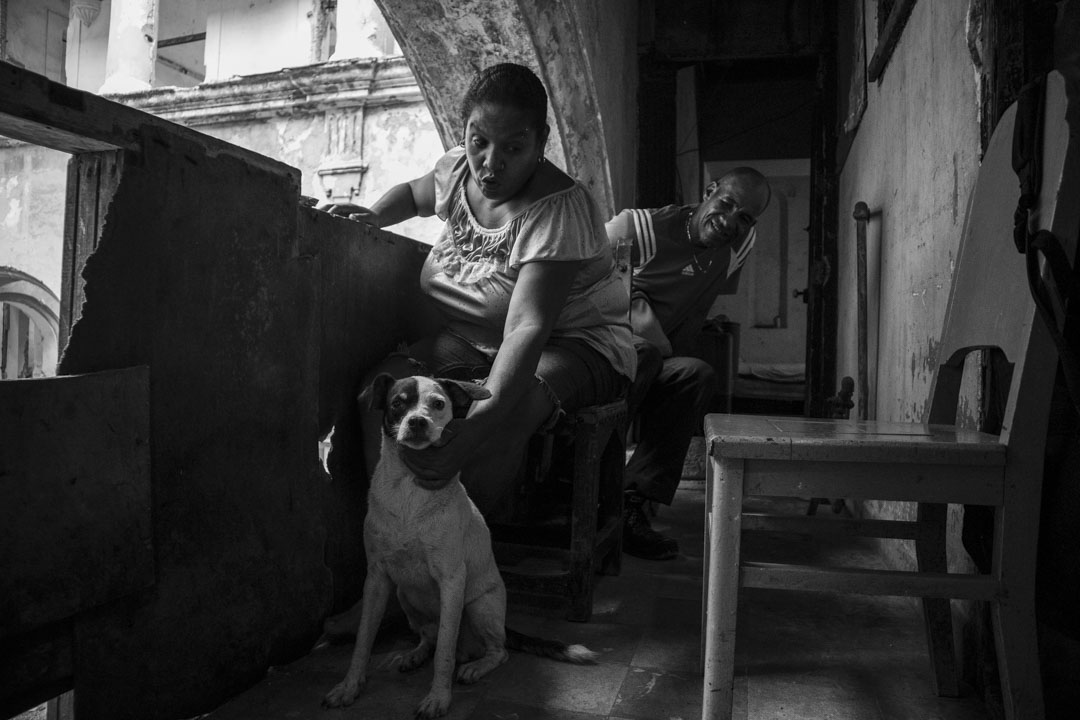 El Moro y Bárbara son de Santiago de Cuba. Se conocieron hace trece años y juntos decidieron venir a La Habana buscando una vida mejor. Ellos son los últimos moradores de un grupo de trece familias que ocupaban el sitio cuando el lugar era una gran ciudadela. El derrumbe del techo hace dos años hizo que se marcharan todos menos ellos, lo cual les permitió expandirse y habitar todo el espacio. Siguiendo tradiciones de su entorno rural originario convirtieron el edifico en una especie de granja con gallinas, cerdos y palomas. Hoy la familia está a la espera de que se les asigne una nueva vivienda, mientras crece la incertidumbre de vivir en un sitio a punto de colapsar.
