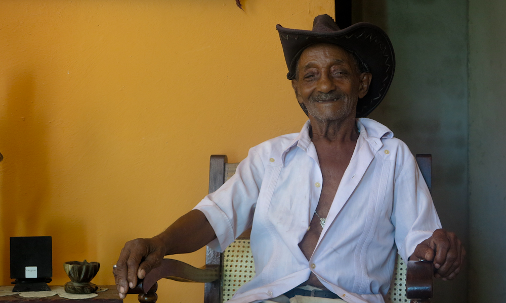 El papá de Mariela es Orestes. Orestes Guillart es una miniatura de 89 años con bastón, sombrero y botas de niño, que todavía sonríe cuando le sacan fotos. Mariela lo trata a ratos como un muñeco. Lo manda a callar, le prohíbe esforzarse. Lo quita, lo pone. Siempre, como una reliquia. Es su manera de cuidarlo. Las preguntas para Orestes, ella las responde o completa. Explica que hasta el final su papá no quería romper su casa. “Su casa que él la hizo. No quería, no quería, no quería. Él nunca quiso venir para acá”. Pero los hijos lo convencieron de asumir el sin remedio. “Mi mamá y mi papá eran propietarios, pero si el Estado necesita… El Estado es el que manda”.