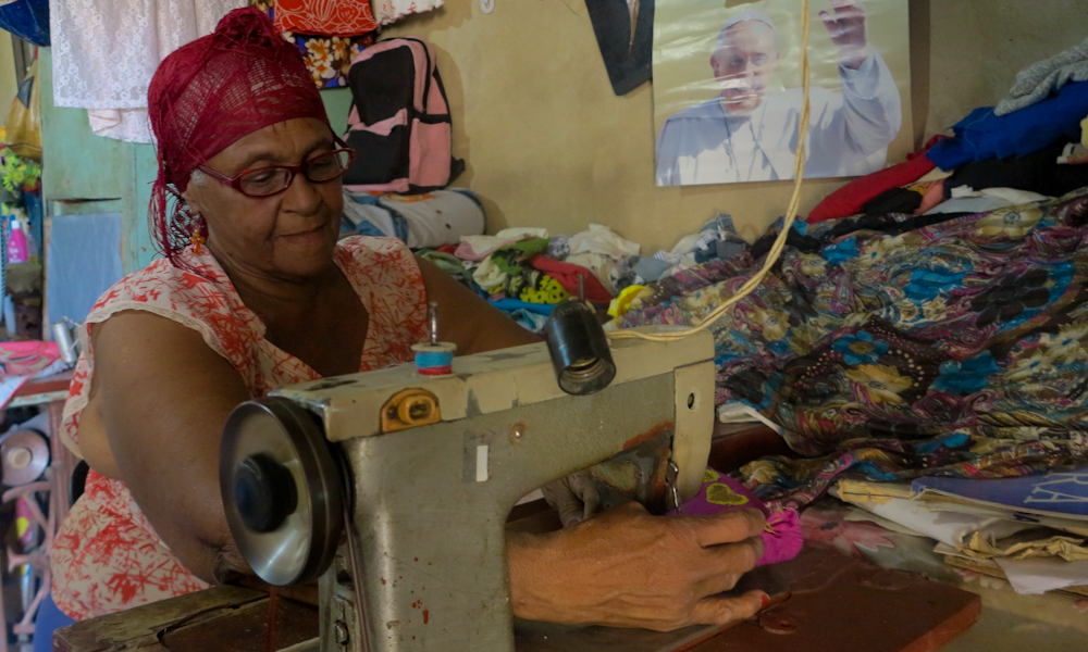 —Son muy estrechas. Mira el espacio que yo tengo. Yo trabajo costura, vivo de eso y lo pongo al servicio de lo que haya que hacer. Nunca he afectado a mi Revolución pidiéndole ayuda económica. Con mis manos es que sobrevivo. Yo hago cosas que sean de fácil adquisición, modelos que puedan agradar a la gente.