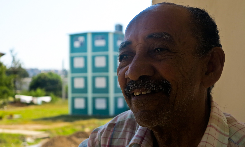 La casa que construyó Orestes comprando bloque por bloque y con un crédito del banco no era lo más grande de la vida, pero era su casa. Y una parte de su vida lo justamente grande como para no querer derribarla. Orestes era operario de máquinas soviéticas empleadas en la construcción y conocía los métodos y proporciones que garantizan la solidez de una obra. “Manejar el equipo y graduar el agua para poder hacer un concreto con calidad. La fundición para la placa y los pisos. Ese era el trabajo mío”. Hoy mira a quienes construyen asentamientos como El Quilombo y se ríe. “Hacen las cosas como quiera”. Tampoco consigue adaptarse. A él le gusta estar amplio. “Yo tenía lugar para 17 machos. Mis pollos. Gallinas”. Y aquí no los puede tener. “Vamos a ver cuando acaben esto cómo es la cosa, si se puede tener un corral fuera, que tú lleves la comida allí y los atiendas”. Extraña su patio. “Sí, sí, cómo no”. No quería demoler. “No, hija, no. Fíjate que desde que me mudaron, allá no he vuelto más que un día”.