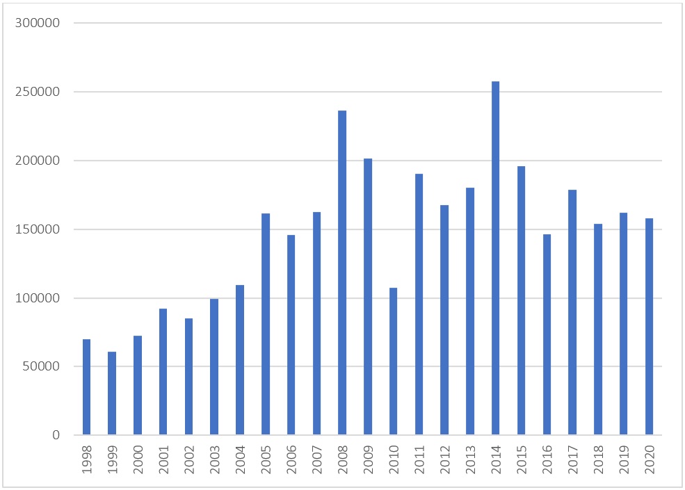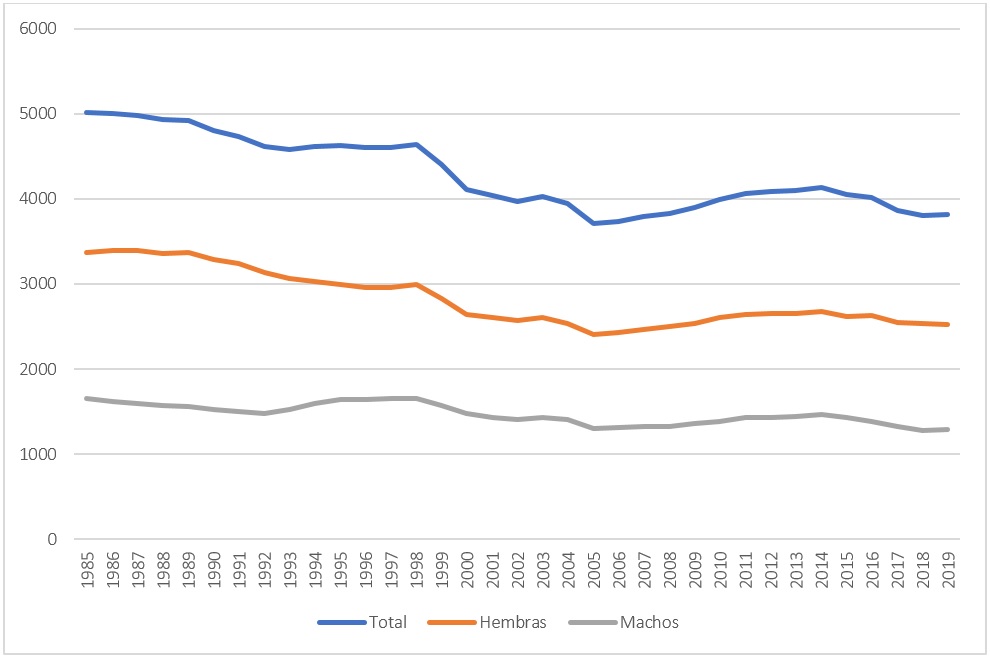 El 2020 fue el tercer año con menor masa ganadera desde 1985, con 3 752 400 animales, de los cuales 2 474 100 eran hembras. Previamente, solo se habían alcanzado cifras tan bajas en 2005 y 2006, con 3 703 700 y 3 737 200 animales, respectivamente.