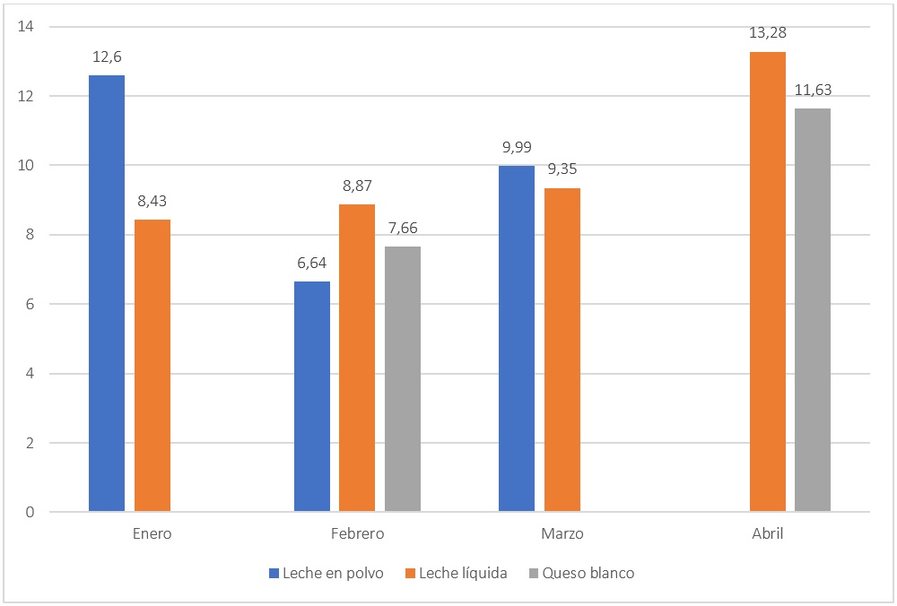 El desabastecimiento ha llevado al encarecimiento de este tipo de productos. Hasta abril de 2022, la leche líquida, la leche en polvo y el queso blanco se ubicaban en casi todos los meses dentro de los bienes y servicios con mayor variación en el Índice de Precios al Consumidor (IPC) elaborado por la ONEI.