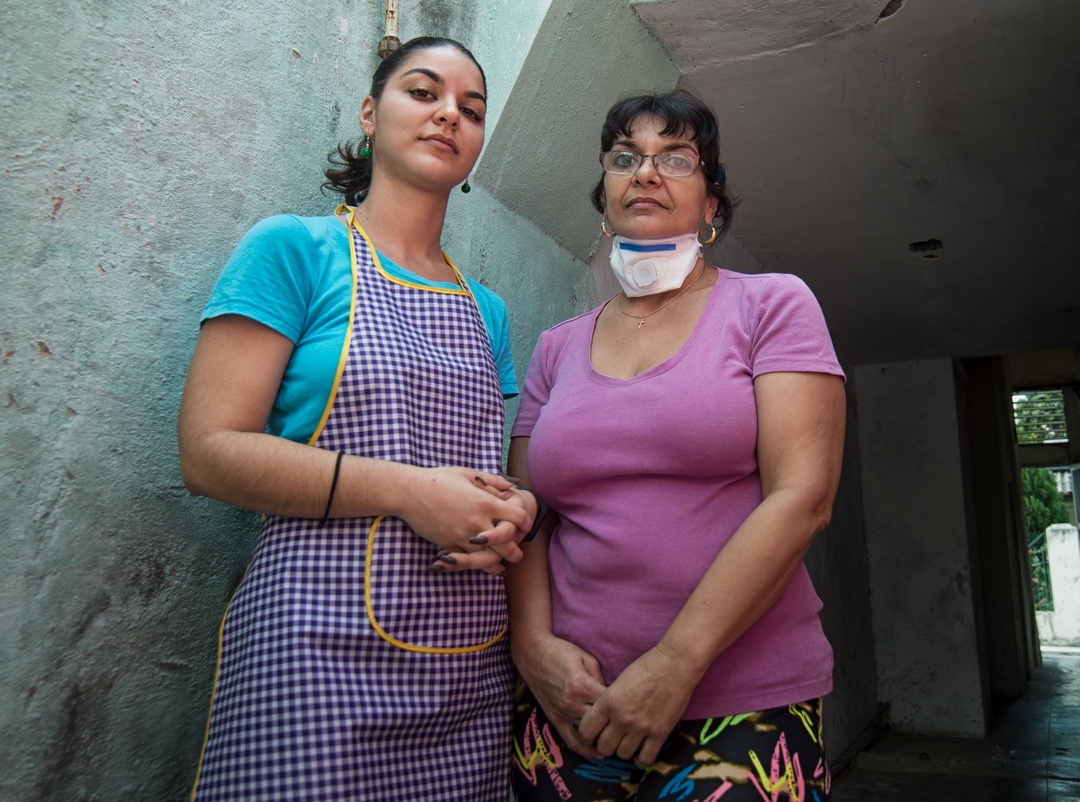 A la izquierda,una mujer que reside a solo una cuadra de la refinería comenta que a principios de marzo “aquí había un olor que me tenía con tremenda alergia. Estamos muy cerca y nosotros quedamos bajos, no tenían que haber habitado esto aquí. Había que estudiar todos esos factores para poner viviendas al lado de industrias, ¿verdad o mentira?”. A la derecha, su vecina y enfermera de la Refinería “Ñico López” le explica que “cuando ponen la planta a funcionar, para que todos tengamos luz, el aire traslada el olor hacia acá. No hay ninguna tubería que venga hacia los vecinos, eso es incierto, es el aire contaminante. Porque, ponte a pensar, ¿cuántos años llevamos viviendo aquí? Nos hubiésemos muerto”.