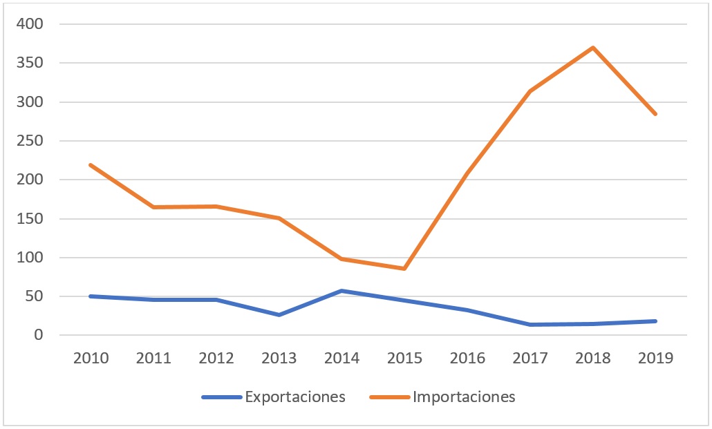 De 2010 a 2019 Cuba exportó mercancías a Rusia por un valor total de 349.9 millones de dólares estadounidenses, mientras que las importaciones desde ese país ascendieron a 2061.8 millones.