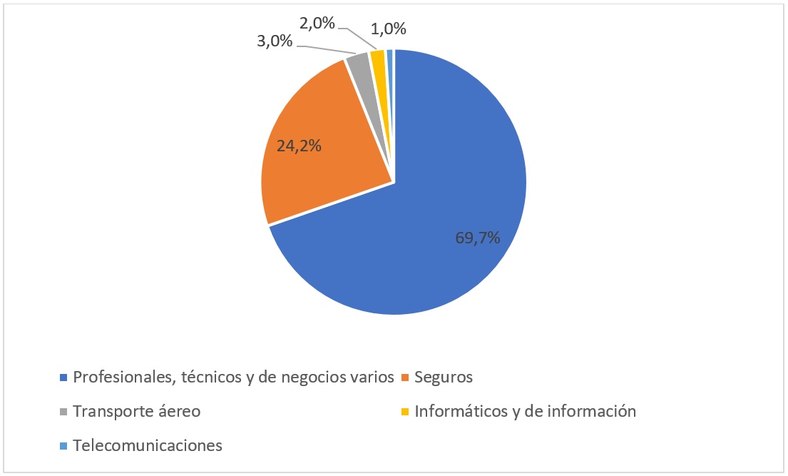 En cuanto al intercambio de servicios, en 2019 Cuba no tuvo exportaciones hacia Rusia; sin embargo, sus importaciones en este rubro ascendieron a 9.9 millones de dólares en ese año, distribuidos de la siguiente forma: