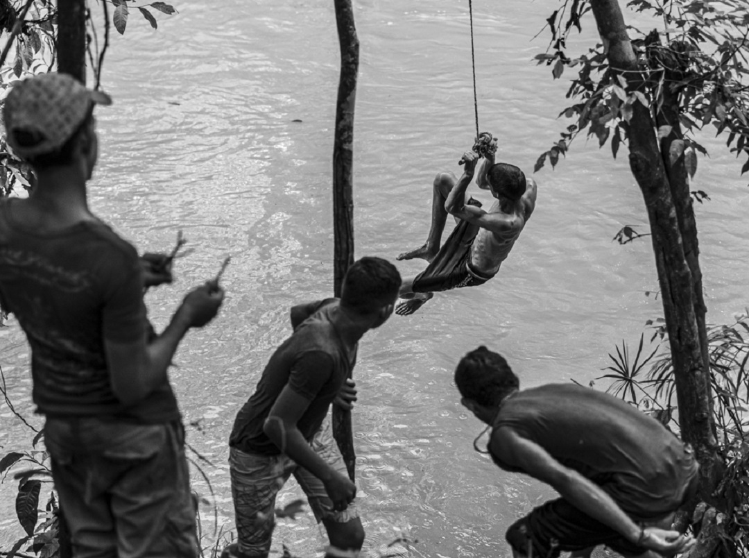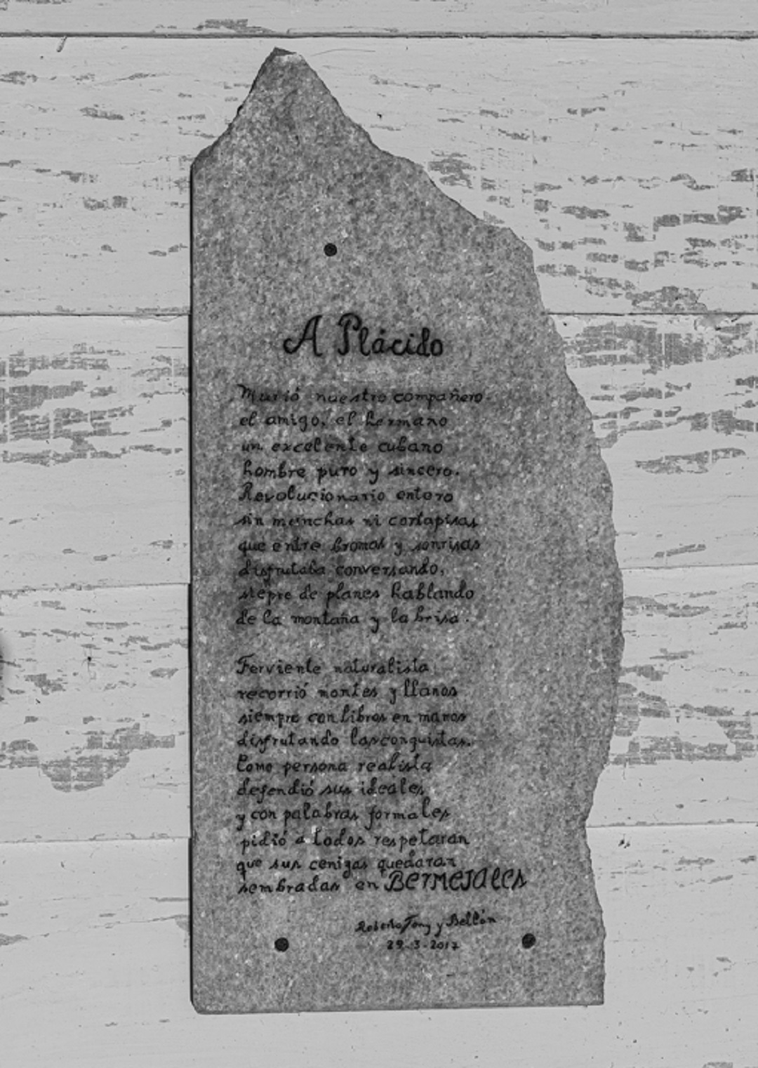 Una familia espera un transporte que los lleve desde el Entronque de Herradura hacia El Abra, o hacia Caiguanabo (Foto: Lázaro Lemus).Al llegar a Caiguanabo, es el riquimbili, una adaptación de una moto Ural con un motor de regadío, el único transporte al que se puede recurrir para ir a Los Bermejales. Al fondo, la Sierra de la Güira (Foto: Lázaro Lemus).Algunas casas en Bermejales han sido abandonadas y, sus partes, se encuentran dispersas entre los árboles (Foto: Lázaro Lemus).Darío Jesús Farrat Pita, médico de 24 años. Es uno de los bañistas que más visita Los Bermejales (Foto: Lázaro Lemus).Román Iglesias tiene 78 años y hace más de cuarenta que visita Los Bermejales. Sus baños son en la mañana y en la tarde, por un tiempo de 15 minutos nada más. Dice que estar más tiempo puede ser malo para el cuerpo (Foto: Lázaro Lemus).Sumergirse en los baños de aguas medicinales es también un motivo para contar y escuchar historias (Foto: Lázaro Lemus).Quien visite Los Bermejales en los meses de marzo y mayo, podrá encontrar frondosos árboles frutales (Foto: Lázaro Lemus).Unos jóvenes se bañan en el río San Diego, cuyo cauce rodea el manantial de aguas termales (Foto: Lázaro Lemus).Plácido Hernández Cruz, una de las personas que más amó Los Bermejales, pidió que incineraran su cuerpo al morir, y que sus cenizas fuesen arrojadas en su patio, sobre las raíces de las guayabitas del pinar que él cultivó. Una lápida en la entrada de su casa contiene un epitafio escrito en décimas. Homenaje de sus seres queridos (Foto: Lázaro Lemus).Román aprovecha los días en Los Bermejales haciendo carbón de un árbol caído frente a su casa (Foto: Lázaro Lemus).El heliógrafo es un instrumento meteorológico que mide la duración de la insolación diaria. Forma parte de un grupo de instrumentos que componen una estación climática, dentro de la Estación Hidrológica “Amistad”, ubicada a la entrada de Los Bermejales (Foto: Lázaro Lemus).Darío le pide a Luis Manuel, hijo de Román, que le ayude a arreglar el techo de su casa (Foto: Lázaro Lemus).El agua de lluvia suele aprovecharse en Los Bermejales, ya que en las casas no hay agua corriente ni pozos (Foto: Lázaro Lemus).Darío cruza un puente de troncos de pino sobre el río San Diego, que comunica el poblado con las tierras de la única familia que vive en Los Bermejales (Foto: Lázaro Lemus).Osniel Martínez (El Pollo) y su familia, son los únicos habitantes de Los Bermejales. Osniel sufre de escoliosis, enfermedad que dificulta su vida como campesino (Foto: Lázaro Lemus).Yanieski Martínez, de 15 años de edad, es el hijo mayor de Osniel. Yanieski abandonó la escuela en la que estudiaba en el Pueblo de San Andrés, a 20 kilómetros de distancia de Los Bermejales, para llevar una vida de campesino (Foto: Lázaro Lemus).Yanieski tiene un esguince en su pie izquierdo. Darío le vendó el pie con un retazo de tela, y le mandó reposo absoluto durante siete días (Foto: Lázaro Lemus).Lo que más disfruta Darío en Los Bermejales es descansar durante horas dentro del manantial. Allí puede desayunar, bañarse o dormir… hasta que algún bañista (como ocurrió en una ocasión) lo despierte y lo regañe por pasarse tanto tiempo dentro del agua (Foto: Lázaro Lemus).
