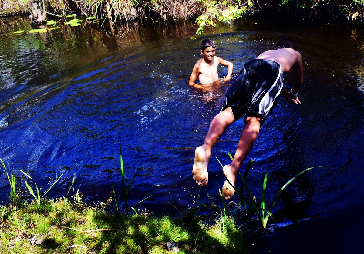 Los niños dan saltos mortales del puente al agua, se tiran de cabeza, se tiran de las copas de los árboles. Javier está concentrado en la pesca. Se aleja porque los peces no pican si sienten ruido. Algunos pican y se desenganchan. Le comen la carnada poco a poco. Todavía es temprano, dice Javier que por eso no pican, que ayer vino al caer la tarde y sacó medio saco. Javier pesca desde hace ocho años. Terminó noveno, empezó una escuela de oficios, la dejó, empezó en esto. Gringo ya estaba práctico y lo enseñó con escopetas de aire, submarino; con fija, un tridente para enganchar el pez; a piscina, una malla donde el pez se enreda; a nailon, con carnada, tradicional. Gringo tenía 22 años y tremenda experiencia. “Lo primero que cogí fue biajaca –dice–, pero el pez gato se la comió y lo que queda es tilapia, y carpa, y eso”. El pez gato más grande que se ha visto en Santo Tomás tenía 42 libras. Lo cogió el Gordo. Gringo ha cogido de hasta 30 cuando sale de noche, con linternas. “La claria pica con cualquier carnada. Difíciles el robalo y el sábalo, que nunca pican”, dice.