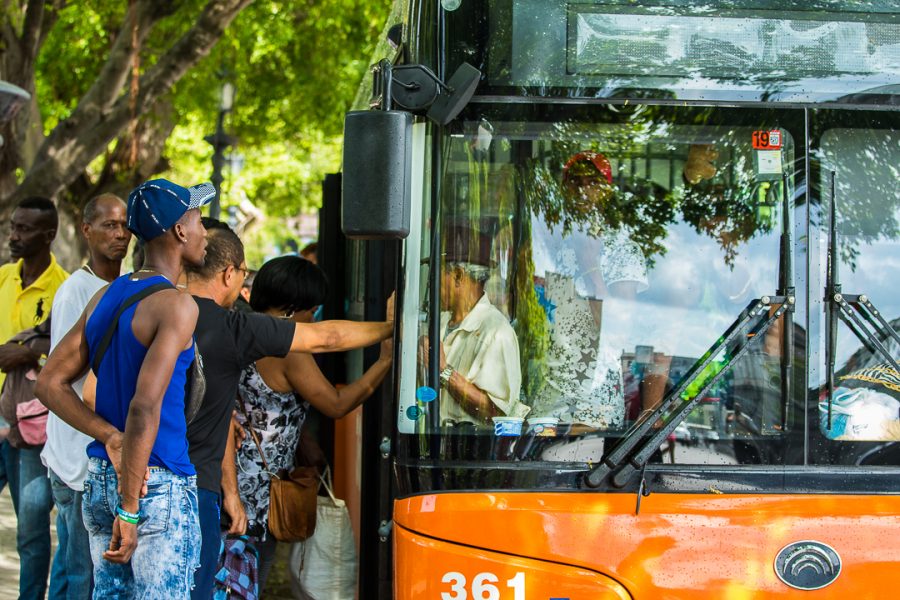 En la primera parada del P7, frente al Parque de la Fraternidad, en la Habana Vieja, un oficial de tránsito y seis policías organizan las colas: una para los que irán de pie y otra para los sentados. Aun así, se pierden, se disgregan; la gente grita, se empuja. Los más altos y fuertes atropellan a los más pequeños mientras el chofer clama por colaboración y la policía impone el orden en un forcejeo. Todos tratan de irse: en la puerta, comprimidos, aplastados, pero dentro. Saben que esperar otra guagua es correr riesgo, es jugar con la suerte. El P7 arranca lento y la última puerta va casi abierta. En el camino, se saltará varias paradas, dejará a pocas personas y podrán subir menos hasta la última. “Desde el Período Especial esto no estaba así”, se comenta.