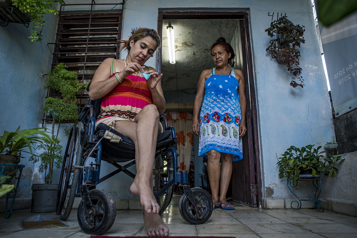 Hace un par de semanas que Nayivi regresó a Centro Habana. Tuvieron que reacomodarle el hábitat. Separaron la cama de la pared, aunque no hay cómo ponerla sin que una viga le quede en el medio. Ni hay un tramo de techo que no esté todo el tiempo al aplastarla. Tenía que haberse quedado en Párraga, pero tiene que hacer fisioterapia, que sigue para casos excepcionales en pleno cierre por coronavirus. Y sobre todo tiene que resolver el problema de la casa.