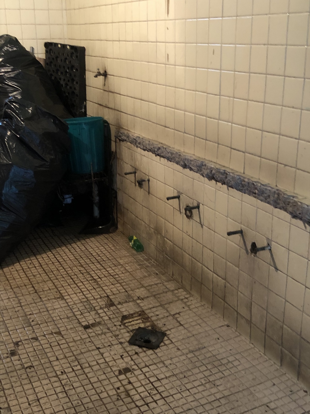 Aunque la recomendación data de cinco años atrás, este equipo pudo constatar que la condición de estos centros sigue siendo la misma: excusados sin flujo de agua, tambos para llenarse con una llave descompuesta, instalaciones de agua incompletas y condiciones de higiene tan deplorables, que incluso hay roedores entre los espacios que los trabajadores usan como bodega, ante la imposibilidad de darles su uso original de regaderas.
