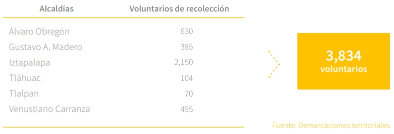 Para 2019, cinco alcaldías reconocieron la presencia de 1 249 voluntarios en recolección vehicular: